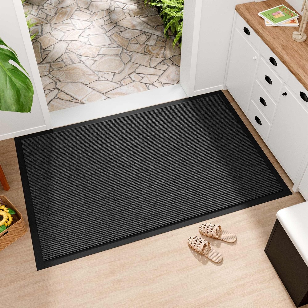 This doormat is a game-changer for keeping my entryway clean! The extra-large size catches more dirt, and the non-slip backing stays perfectly in place. It’s sturdy enough for outdoor use but sleek enough for inside—no more muddy footprints. The low pile makes it easy to sweep or shake out, and the rubber base grips even when wet. Perfect for high-traffic doors, and the simple welcome design fits any style. Definitely worth it for a cleaner home!