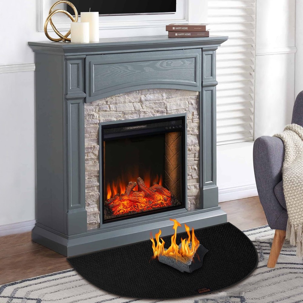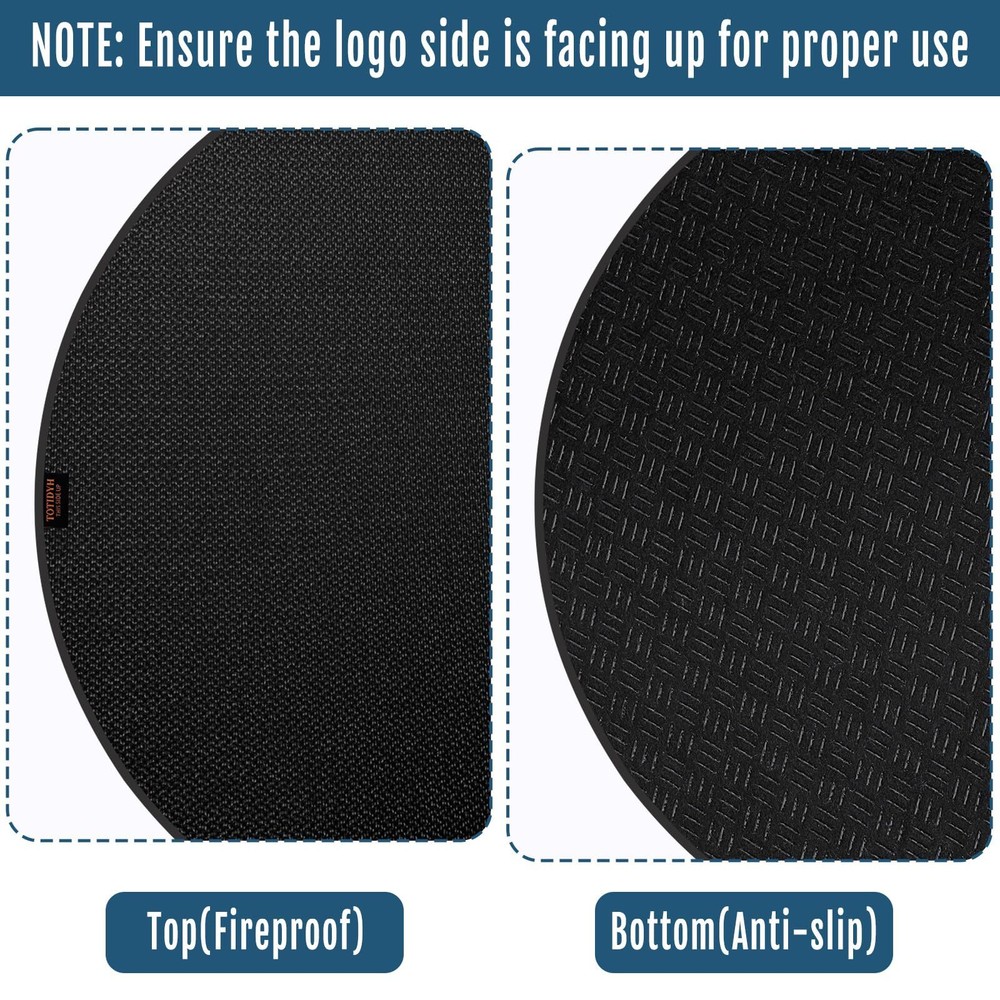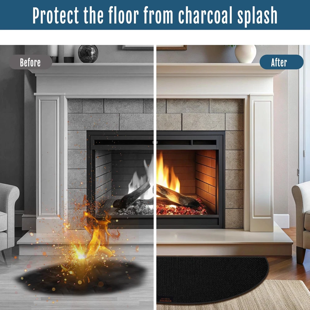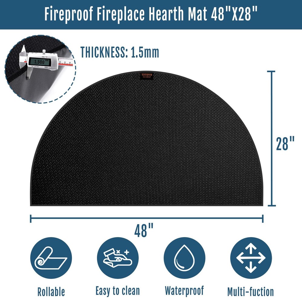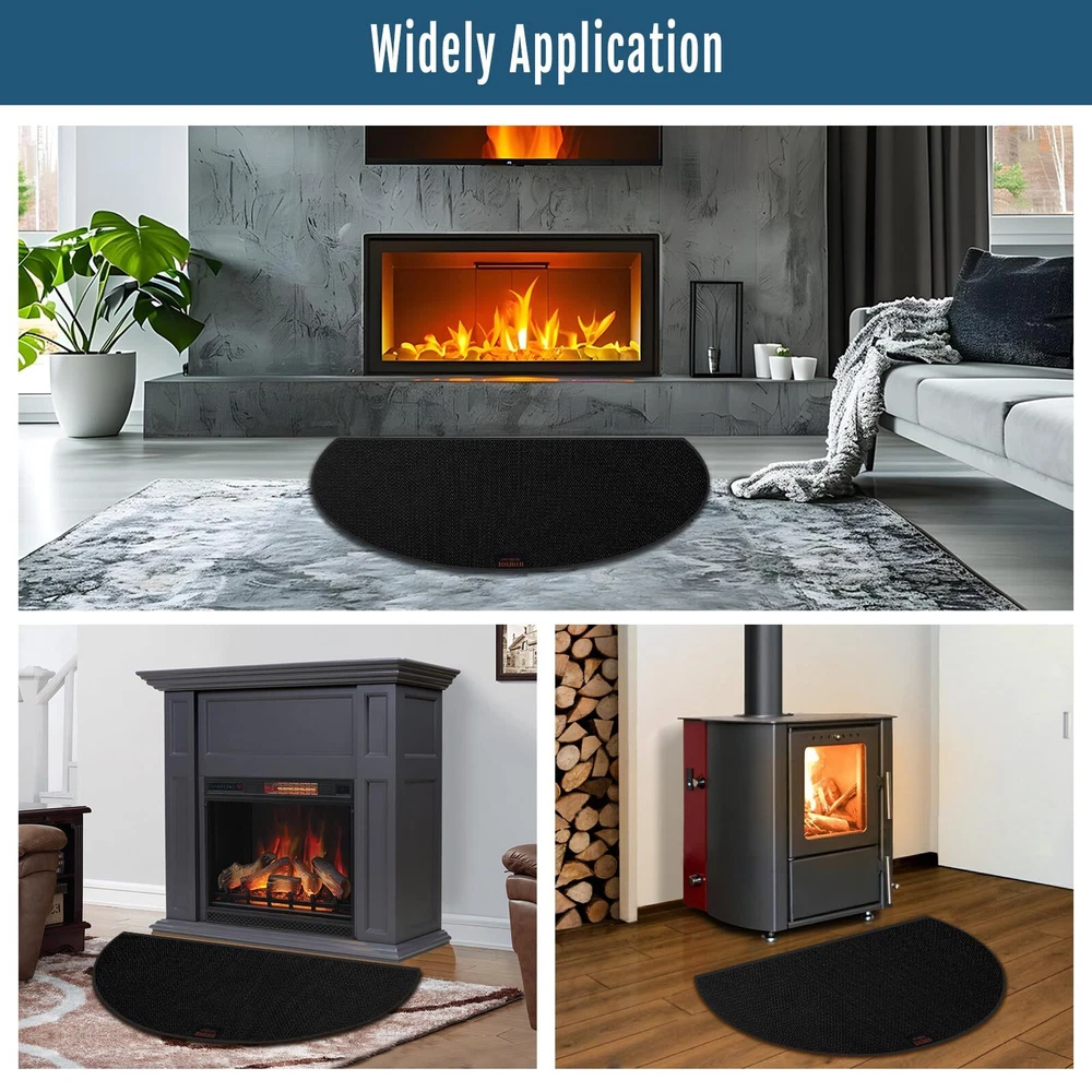 48x28in Fireproof Half Round Fireplace Hearth Rug - Heat Resistant Silicone Mat for Safety