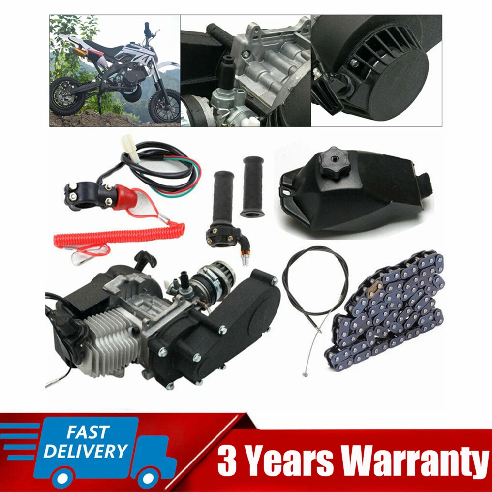 Package includes: 1*49cc engine 1*Fuel tank 1*Throttle cable 1*Wire harness 1*Handle 1*Chain Engine suitable for: For 49CC 2 Stroke Pocket Bike, Mini Dirt Bike, ATV or Scooter. Feature: 1.49cc mini motor air cooled racing engine capable of achieving 40mph dependant on user weight and terrain. 2.Engine is COMPELTE WITH High performance cylinder head, plug, powder coated metal pull start, air filter and 14mm carburettor,Balanced crank, balanced flywheel, ported piston windows, Uprated Gear transmission unit. 3.For 49CC 2 Stroke Pocket Bike, Mini Dirt Bike, ATV or Scooter. Note: Does not include instructions, it is strongly recommended that professionals install. Please be sure to use professional two-stroke oil, do not use four-stroke or other stroke oil 49CC 2 Stroke Engine Motor Kit Pull Start for Pocket Mini Quad Bike Scooter ATV 2-stroke 49cc Engine Motor Kit For Pocket Bicycle Mini Dirt Bike Atv Scooter Package includes: 1*49cc engine 1*Fuel tank 1*Throttle cable 1*Wire harness 1*Handle 1*Chain Engine suitable for: For 49CC 2 Stroke Pocket Bike, Mini Dirt Bike, ATV or Scooter. Feature: 1.49cc mini motor air cooled racing engine capable of achieving 40mph dependant on user weight and terrain. 2.Engine is COMPELTE WITH High performance cylinder head, plug, powder coated metal pull start, air filter and 14mm carburettor,Balanced crank, balanced flywheel, ported piston windows, Uprated Gear transmission unit. 3.For 49CC 2 Stroke Pocket Bike, Mini Dirt Bike, ATV or Scooter. Note: Does not include instructions, it is strongly recommended that professionals install. Please be sure to use professional two-stroke oil, do not use four-stroke or other stroke oil, otherwise it will cause engine loss. Product Description: Condition:New Engine Displacement:49cc Cylinder Numbers:Single cylinder Stroke:2-stroke Chain:T8F Sprocket:14 Teeth Gas-oil Mix Rate: 25:1(Gasoline :Two-stroke motor oil) Gear Box Reduction Rate: 3.1 : 1 Displacement: 49cc Spark Plug Size: L7T L7TC Application:for most air cooled Mini Dirt Bikes Brand:Unbranded Payment Delivery details Terms of sales About us Contact us Payment We accept ebay payment 。 Fees such as import duties, taxes are not included in the item price or shipping costs. These charges are the buyer's responsibility. Delivery details Shipping: 2-9 working days to: USA Terms of sales We maintain high standards of excellence and strive for hundred percent customer satisfaction. Feedback is very important to us. We hope that you contact us immediately before you give neutral or negative feedback, so that we can address your concerns. It is impossible to address issues if we do not know about them! About us Your satis faction is our ultimate goal. We work hard to earn your trust and future business. Our certified technicians have tested each item before shipping. The unit comes with 1 year limited warranty on all manufacturing defects. a) If you receive a defective item, you may return it or ask for a discount. Please contact us within 14 days after you receive the package. b) What you returned must be intact and in its original packaging as re? u. Customer is responsible for shipping costs of the returned item. c) We will cover the cost of shipping back t with the shipping rate indicated in the registration page. We will send you a new unit or refund the full payment you paid. Thank you. Contact us Business Hour Business Hour: Monday To Friday: 8:30 AM to 5:00 PM (Beijing China time) Due to time zones, our reply to your questions may not be immediately. But within above working time, we will reply your email within 24 hours. If it's non-workdays, please kindly be patient and wait till Monday. Please contact us with ebay message. Please feel free to contact us if you have any questions. Monday To Friday: 8:30 AM to 5:00 PM (Beijing China time) Due to time zones, our reply to your questions may not be immediately. But within above working time, we will reply your email within 24 hours. If it's non-workdays, please kindly be patient and wait till Monday. Please contact us with ebay message. Please feel free to contact us if you have any questions. *Feature: High quality!Great Communication! Features ★Easy installation,Easy Operation★ Country/Region of Manufacture China OE/OEM Part Number Does not apply Manufacturer Warranty 3 Years MPN ( MPN ) n/a Feaures Convenient Use,Unique Appearance,Reliable Quality Tip If you have any question , please contact us Note: Do not send to Brazil Bundle Description: No Item location: CA /NJ /Austell Transportation does not include: canarias shipping notice: Can not ship to Puerto Rico,Alaska/Hawaii Brand Unbranded Manufacturer Part Number Does Not Apply Type 49cc engine Warranty Yes Engine Displacement 49cc Cylinder Numbers Single cylinder Stroke 2 Stroke Chain T8F Sprocket 14 Teeth Gear Box Reduction Rate 3.1 : 1 Gas-oil Mix Rate 25:1 Displacement 49cc Spark Plug Size L7T L7TC Application for most air cooled Mini Dirt Bikes Placement on Vehicle Rear Surface Finish / Compatible Make / Compatible Year / Machine Type / Compatible Model / Color / Material / Vintage Part Yes UPC Does not apply
