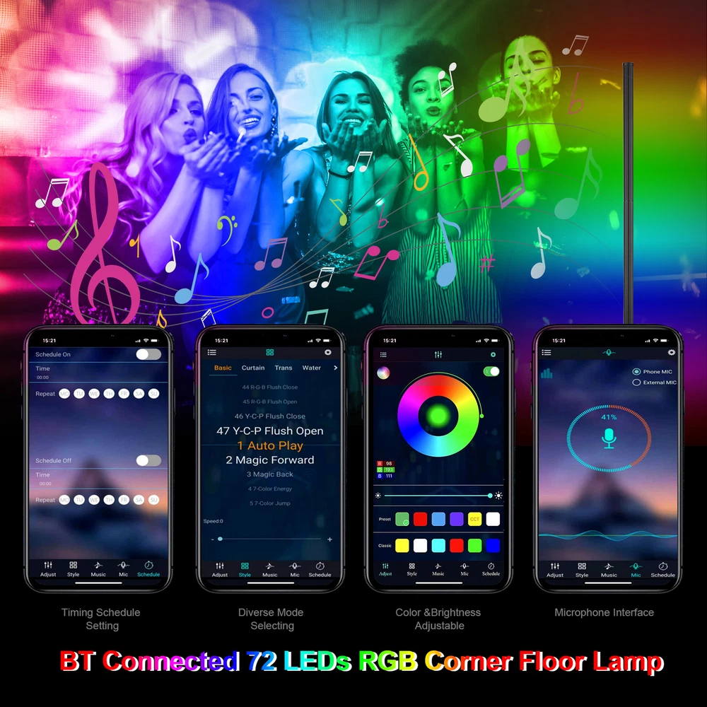 This BT connected multifunctional LEDs floor light brings you both nice illumination and modern decoration. High brightness and low p-ower consumption. Diverse and flexible app control, controller and voice control makes it convenient use without space & t-ime limitation. Just come and buy! Features: 【Better Illumination Enjoyment】Adopted superb 72pcs LEDs, up to 30,000 hours long lifespan, can produce high brightness and flicker-free, anti-glare light without strobes and radiation,eye-protective. 【Practical & Multifunctional】Supported BT connected technology, you can download the app “duoCo StripX'' free after scanning QR code and enjoy the intelligent life, you can set different light colors, diverse modes, 1&2&3H timing function, turning on/off, adjust brightness/speed, dynamic light modes and realize colors temperature changing by app. Enjoying the sync music modes. 【Flexible Control Methods】Diverse and flexible app control, controller, voice control and liner control make it convenient use for different needed. 【Reliable Material】Made of superb plastic & aluminum material, reliable use, easy to install with completed accessories and stable base for nice performance. 【Intelligent Life】Replacement for Android /IOS cell phone system, just download its App and enjoy after BT connected. 【Nice Atmospheres Light & Wide Applications】The dynamic color lighting modes allows you to switch the mood of the room with a simple click and create exactly the view you want. Nice for asile, patios, stadiums, bedroom, living room, cafe shop etc. Specifications: Input voltage: D C 5 V Consumption: 11w Connection: BT Connected Supported cell phone system: Replacement for Android/ IOS App name: duoCo StripX Light source: LEDs LEDs quantity: 72PCS Lumen flux: 1800lm Lifespan of LEDs: 30,000 hours Controlling distance: 15 meters Cell of controller: 1 * 3V 150mAh CR2025 Item color: Black Material: Plastic & aluminum Item size: 1250 * 295mm/ 49.2 * 11.6inches (Height * Width) Package size: 448 * 105 * 80mm/ 17.6 * 4.1 * 3.1inches (Length * Width * Height) Package weight: 1200g/ 2.6lb Notes: 1. There are different plug specifications to choose from. Please choose one suitable for your country. 2. Only supported 2.4Ghz BT connected version. Packaging List: 1 Set * Floor Light 1 * Controller 1 * Instruction