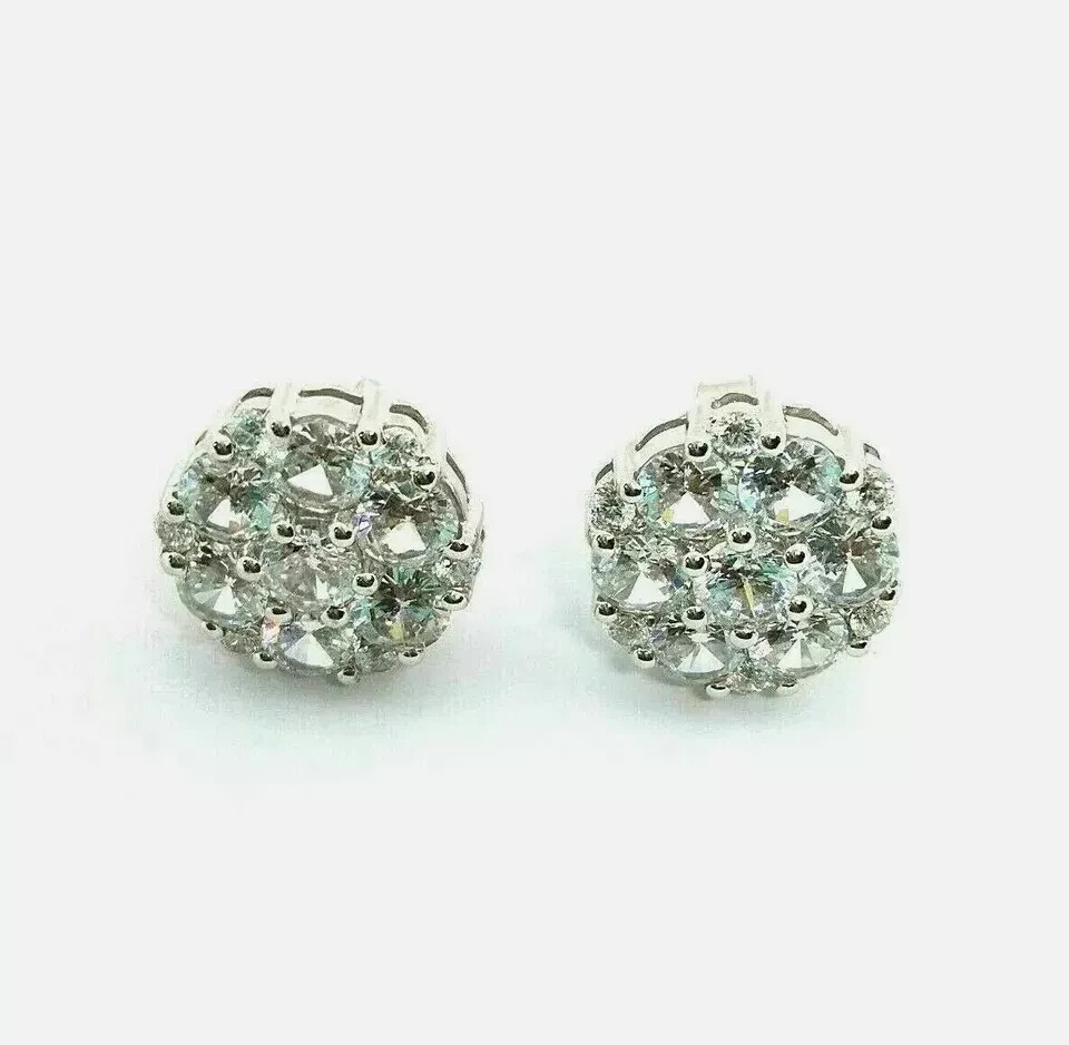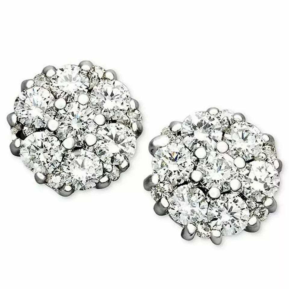 4CT Round Moissanite Flower Cluster Stud Earrings in 14K White Gold