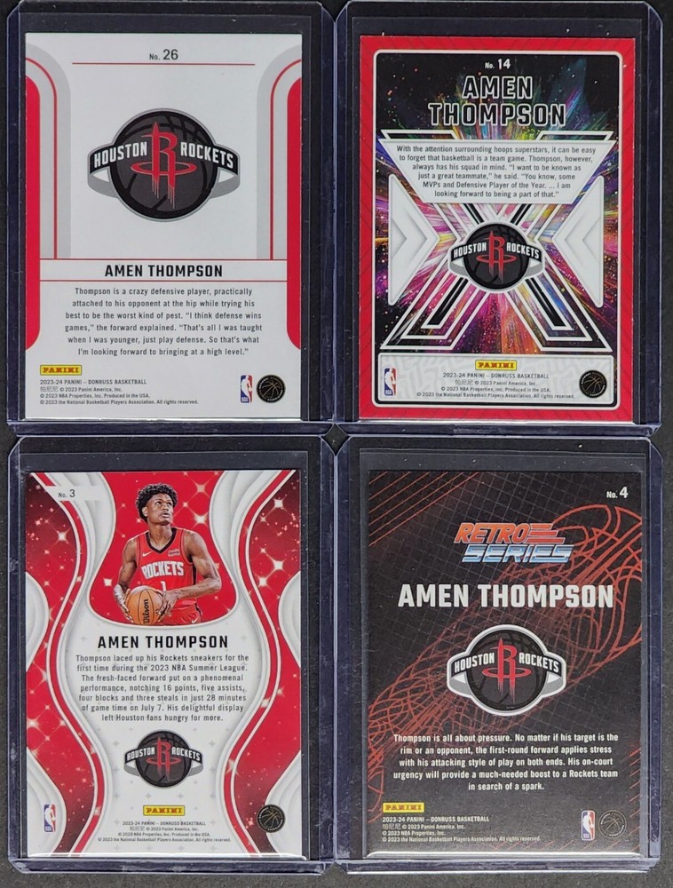 🔥 4-Card AMEN THOMPSON Rookie Lot 2023-24 Panini Donruss Houston Rockets RC $5