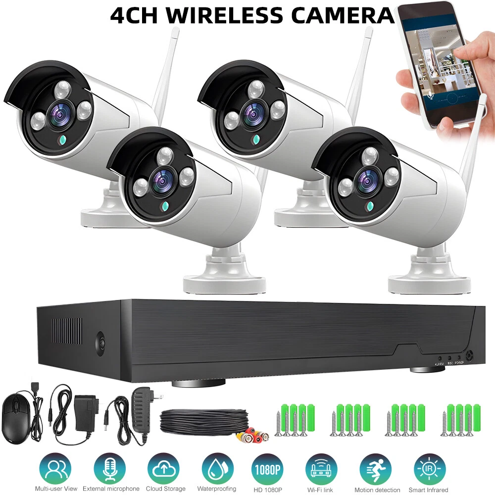 4-Channel 4MP Wireless NVR Security System for Outdoor Home CCTV Waterproof WIFI