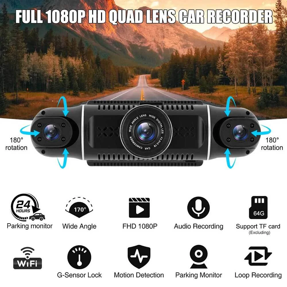 Product Description 4-Channel Car DVR Dash Cam Video Recorder G-Sensor 1080P Front Rear Cameras 64GB Features: *1. [4-channel Driving Camera] 1080P FHD DVR camera is composed of a front lens, a left lens, a right lens, and an optional rear lens to cover as many as possible directions when you drive. *2. [Crystal Clear Image] The 170-degree ultra-wide angle lens and 3-inch large LCD screen of the camera can capture clearer videos even when driving at high speed, allowing you to watch important moments again. The left and right lensed can be rotated independently to record the front and cabin images. *3. [Built-in WIFI Module] Simple and easy to operate, you can view device videos and images in real time through the app. NOTE: The WiFi function is optional. *4. [Night Vision & 24H Parking Monitoring] The cabin camera has an F1.8 aperture and 4 infrared lights. In addition to producing incredibly clear recordings, its image will be far superior to that of other driving recorders at night. These three cameras also integrate the latest and most sensitive night vision image sensors, so they can capture stunning images even in pitch-black spaces at night, recording 24/7. *5. [Loop Recording & G-Sensor] Automatically overwrite the past videos when the memory card is full. G-sensor will be activated when there is a collision to lock the key video you need and prevent it from being overwritten. Description: *1. Resolution: Front 1920P+Left 1080P+Right 1080P+Rear 1080P *2. Pixel: 1920 * 1080/30 frames *3. Lens Angle: 170 degrees *4. Screen: 3.0 inch IPS *5. Loop Recording: supported *6. G-sensor: supported *7. Parking Monitoring: supported *8. Mobile Detection: supported *9. Memory Card: up to 64GB *10. Power Interface: USB2.0/5V-2.5A *11. Battery: 150MAH with protective plate *12. Frequency: 50/60Hz *13. Language: English, Chinese *14. Working Temperature: -20°C~+70°C *15.Voltage:10-24V *16.WIFI:Hotspot Wifi Name:A360 Wifi Password:1234567890 *17.Battery Capacity:150 mAh *18.Power Cable Length:3.5 meters *19.Reverse Camera Cable Length:6.4 meters Package Includes: 1 x Dashcam 1 x Bracket 1 x Power Cord 1 x Rear Camera 1 x Rear Camera Cable 1 x 64 GB TF Card Payment Shipping Terms Returns Contact Us About Taxes 1. We accept payment via PAYPAL ONLY . 2. Payment must be made within 4 days of auction closing. (Non-payment may result in a UPI (Unpaid Item) being put on your account. eBay will automatically close your account if you accumulate 4 UPI's total.) 3. TOTAL AMOUNT DUE includes the final auction price plus S&H(Shipping and Handling). 4.S&H will be determined based upon the SHIP TO address, Tax and customs. PLEASE NOTE: S&H DOES NOT INCLUDE DUTIES, LOCATL TAXES OR ANY OTHER IMPORTATION FEES. We are not responsible for any custom duty or import tax. 5. Please list your special requests (color, packages, etc.) in the PAYPAL NOTES SECTION when you make payment. Our working hours Beijing time from 9:00 a.m. to 18:00 p.m . Monday to Friday Delivery details 1. WORLDWIDE SHIPPING. (Except South America , APO/AFO,ect) 2.Orders processed within 24-48 hours of payment verification(excludes weekends and holidays). 3. We only ship to confirmed PAYPAL addresses. Your PAYPAL address MUST MATCH your Shipping address. 4. The images shown are not the actual item and are for your reference only. 5. SERVICE TRANSIT TIME is provided by the carrier and excludes weekends and holidays. Transit times may vary, particularly during the holiday season. 6. If you have not received your shipment within 40 days from payment, please contact us. We will track the shipment and get back to you as soon as possible with a reply. Our goal is customer satisfaction! 7. Due to stock status and time differences, we will choose to ship your item from our first available warehouse for fast delivery. 8.Delivery time: (Other countries or remote areas may take longer.) Delivery time: Country Delivery Time Working Days(not including holiday) 5-7 8-11 12-14 15-19 20-22 >22 Working Days+Saturday+Sunday 5-9 10-15 16-20 21-25 26-30 >31 United States Rate(item arrived) 5.1% 50.1% 29.6% 10.5% 4.7% Contact seller United Kingdom Rate(item arrived) 9.9% 63.2% 19.1% 3.4% 4.4% Contact seller Australia Rate(item arrived) 21.4% 50.0% 1 4.3% 7.2% 7.1% Contact seller France Rate(item arrived) 10.5% 28.6% 43.8% 10.1% 7.0% Contact seller Germany Rate(item arrived) 11.1% 22.2% 30.3% 20.9% 15.5% Contact seller Canada Rate(item arrived) 0.0% 47.1% 31.4% 17.6% 3.9% Contact seller Spain Rate(item arrived) 3.5% 25.0% 47.9% 12.9% 10.7% Contact seller (Other countries or remote areas may take longer.) Warranty: 1. One Year Manufacturer's Warranty for defective items (excluding items damaged and/or misused after receipt). Accessories come with a 3-month warranty. 2.If buyer requests a return when there is no quality problem of the item he received,return postage has to be paid by buyer,and postage for the item won't be returned. 3.If item is damaged or defective on arrival,buyer can either requests a refund or replacement,and postage will be paid by us,meanwhile,the item must be returned. Note: A. Customs duties is neither included in the item value nor the postage,which should be in the responsibility of buyers. B. Please check with your country's customs office to determine what these additional costs will be prior to bidding/buying. 1. You have 7 days to contact us and 10 days to return it from the date it was received. WE WILL ISSUE YOU A REFUND OR REPLACEMENT ! 2. All returned items MUST BE in the original packaging and you MUST PROVIDE us with the shipping tracking number , specific reason for the return, and your eBay ID . 3. We will refund YOUR FULL WINNING BID AMOUNT, upon receipt of the item in its original condition and packaging with all components and accessories included, AFTER BOTH Buyer and Seller cancel the transaction from eBay. OR, you may choose to have a replacement. 4. Return shipping is to be paid by the Buyer . Our office hours are: 9:00 a.