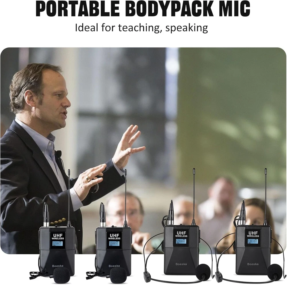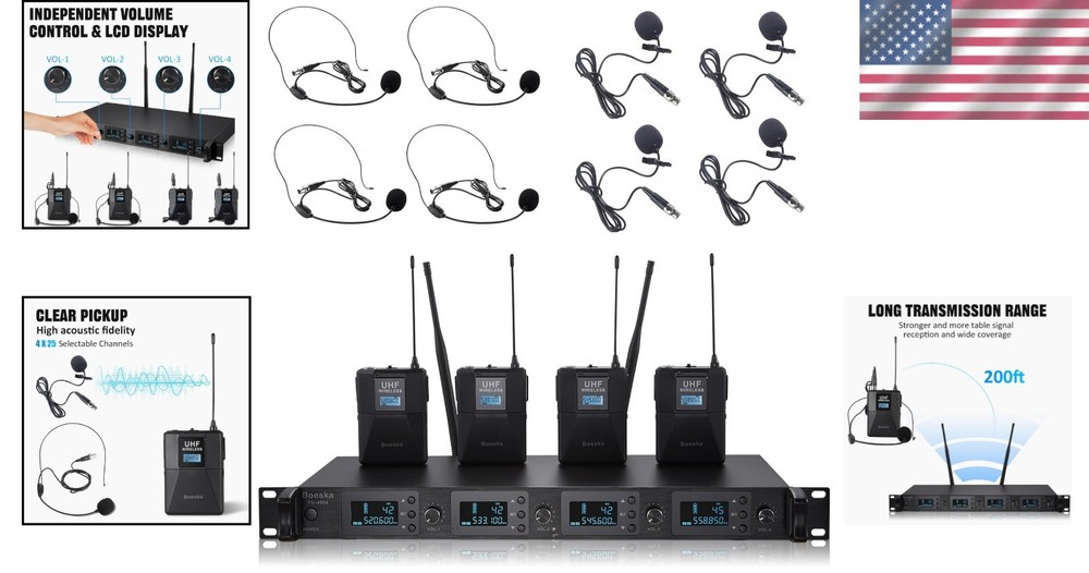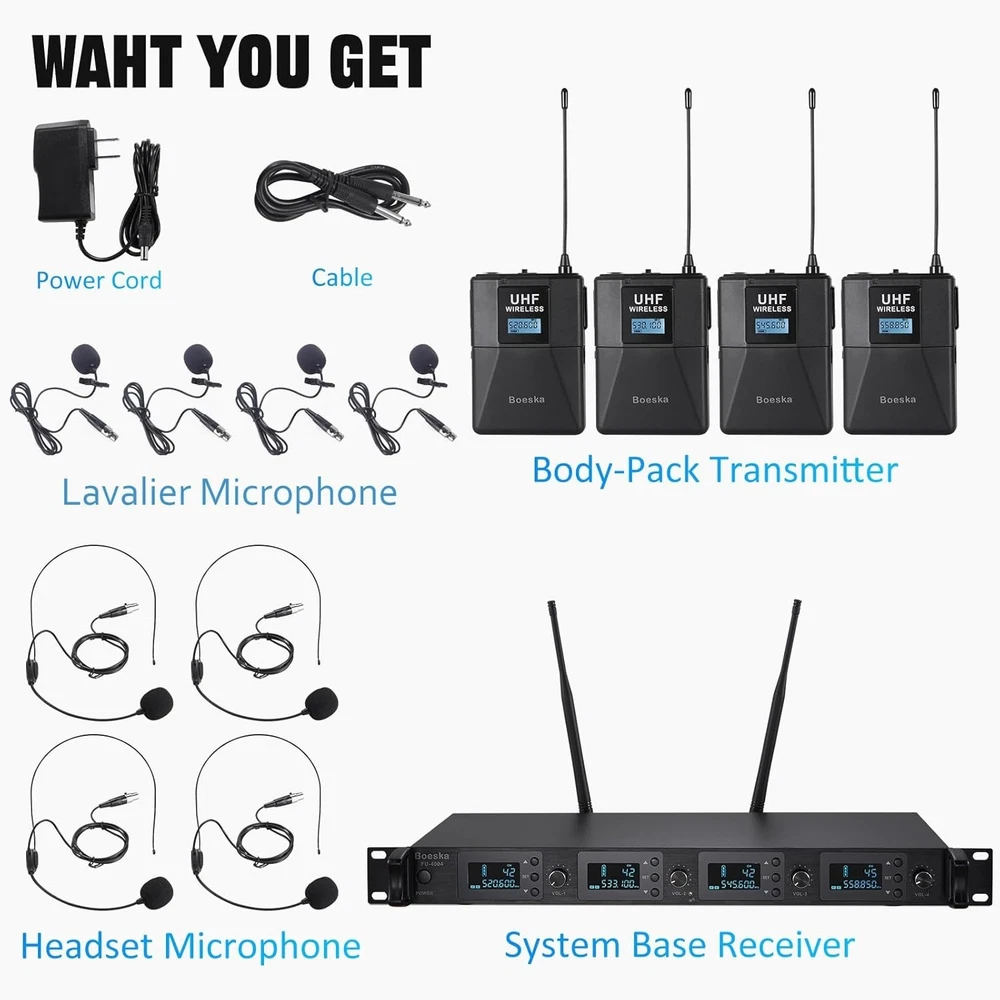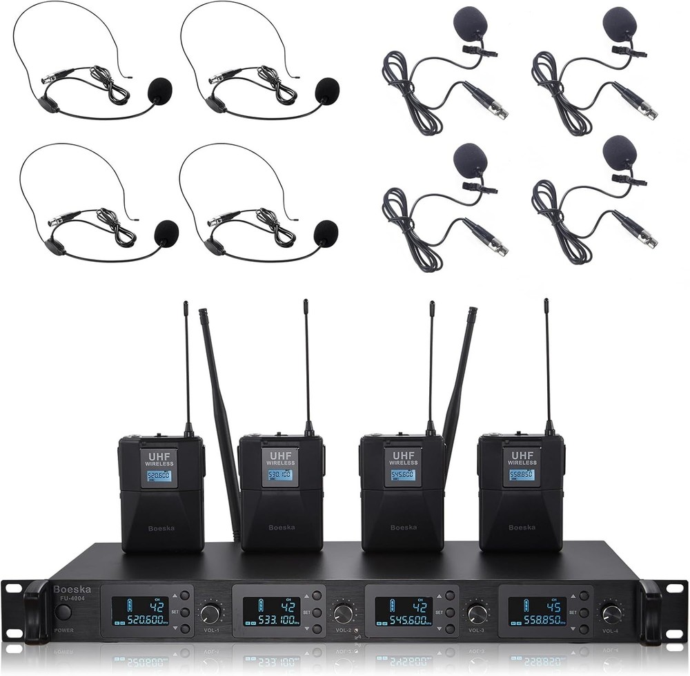 Professional 4-Channel UHF Wireless Microphone System for Weddings & Conferences ‹ › ‹ › ‹ › ‹ › ‹ › ‹ › ‹ › ‹ › ‹ › Professional 4-Channel UHF Wireless Microphone System Perfect for Weddings & Conferences Key Features: FOUR CHANNELS DESIGN: Connect up to four microphones simultaneously with individual volume control for each. Enjoy selectable frequency bands from 510 to 560 Mhz with 25 adjustable channels for a tailored audio experience. DIVERSIFIED SOUND ADJUSTMENT: Separate volume control knobs for each mic allow you to create the perfect sound profile for any occasion, whether you're after an energetic delivery or a soft tone. UHF AUDIO TRANSMISSION: Experience exceptional audio performance with a high signal-to-noise ratio. Our UHF wireless design prevents crosstalk, ensuring a clear and stable transmission within a working distance of up to 200 ft. WIDE APPLICATIONS: Freedom of movement is guaranteed with our versatile microphone headset system, suitable for large parties, DJ events, churches, weddings, conferences, lectures, classes, and outdoor activities. What You Get: 1 * Receiver 4 * Wireless Headset Microphones 4 * Wireless Lavalier Microphones 4 * Bodypack Transmitters 1 * Power Adapter 1 * User Manual Please note: Batteries are NOT included. Should you have any inquiries or encounter issues, feel free to reach out for assistance! Why Choose Our Professional Microphone System? Elevate your audio experience with our 4-Channel UHF Wireless Microphone System. This state-of-the-art setup brings unparalleled versatility and quality to your events, allowing you to tailor the sound to your unique needs. Perfect for those significant moments in life, be it weddings or professional conferences, this microphone system ensures every word is crystal clear. Don't settle for anything less than excellence. Order your Professional 4-Channel UHF Wireless Microphone System today and captivate your audience with flawless sound! Shipping Free & Fast Shipping - We offer free shipping to most of the USA with a normal delivery time of 3-10 businessdays. However, due to various situations, additional delivery time (up to 3 weeks) may be required for some items. Alternative Carriers - We may use alternative carriers (e.g. USPS, FedEx, UPS, etc.) to ensure your package arrives safely and on time. Due to the use of multiple carriers, we are unable to provide a tracking number automatically. Handling Time - Orders are processed and shipped within 1-5 business days of receiving cleared payment. Shipping Restrictions - Shipping to Alaska, Hawaii, Puerto Rico, Guam, and other US territories may incur shipping charges or delivery restrictions. Please contact us before ordering, or your order can be refunded/cancelled. State Restrictions - There may be restrictions based on your state of purchase. For example, certain items may not be shipped to California due to state regulations. Contact for Tracking Updates - If you require tracking updates or have any concerns about the delivery of your order, please feel free to contact us, and we will be happy to assist you. Return Please see our ebay return policy. We do not accept return on most products. This is to avoid customers mis-using ebay returns. All sales are final. Please be sure to check the return policy listed at the top of the listing. In rare cases, we may accept returns, if the buyer pays both ways shipping and 20% restocking fee. If you are un-sure of return policy of a particular item, please ask before buying. Payment We accept all major credit cards, PayPal, and Apple Pay for your convenience. Your payment information is secure and encrypted to ensure a safe and seamless transaction. Please complete your payment within 3 days of purchase to avoid any delays in shipping. Feedback Your feedback is extremely important to us. We strive to provide the best products and customer service possible. If you are satisfied with your purchase, please take a moment to leave us a positive review. If you have any concerns or issues with your order, please contact us before leaving negative feedback. We are committed to resolving any problems and ensuring your satisfaction. Contact Us If you have any questions or concerns, please feel free to reach out to our customer support team. You can contact us through the eBay messaging system. We are available Monday to Friday, 9:00 am to 5:00 pm EST, and we will do our best to respond to your inquiry within 24 hours. Buy it now and enjoy a pleasant shopping experience! UPC: Not Set Maximum SPL: 96 dB Unit Quantity: 4 Item Weight: 8.88 pounds Connectivity: Wireless,XLR Features: Adjustable Gain,Adjustable Volume Control,Battery Indicator Light,Omnidirectional Microphones,UHF Audio Transmission,4 Channel Design,Diverse Sound Adjustment,Separate Volume Control Knobs,Event Versatility,High Signal to Noise Ratio,Stable Signal Transmission Compatible Model: Karaoke Machine Brand: Unbranded Form Factor: Microphone System Model: Not Set MPN: Not Set Diaphragm Size: Medium Suitable For: Live Performance Transducer Type: Dynamic Mount Type: None Manufacturer Warranty: Not Set Polar Pattern: Omnidirectional Compatible Brand: Not Set Color: Black