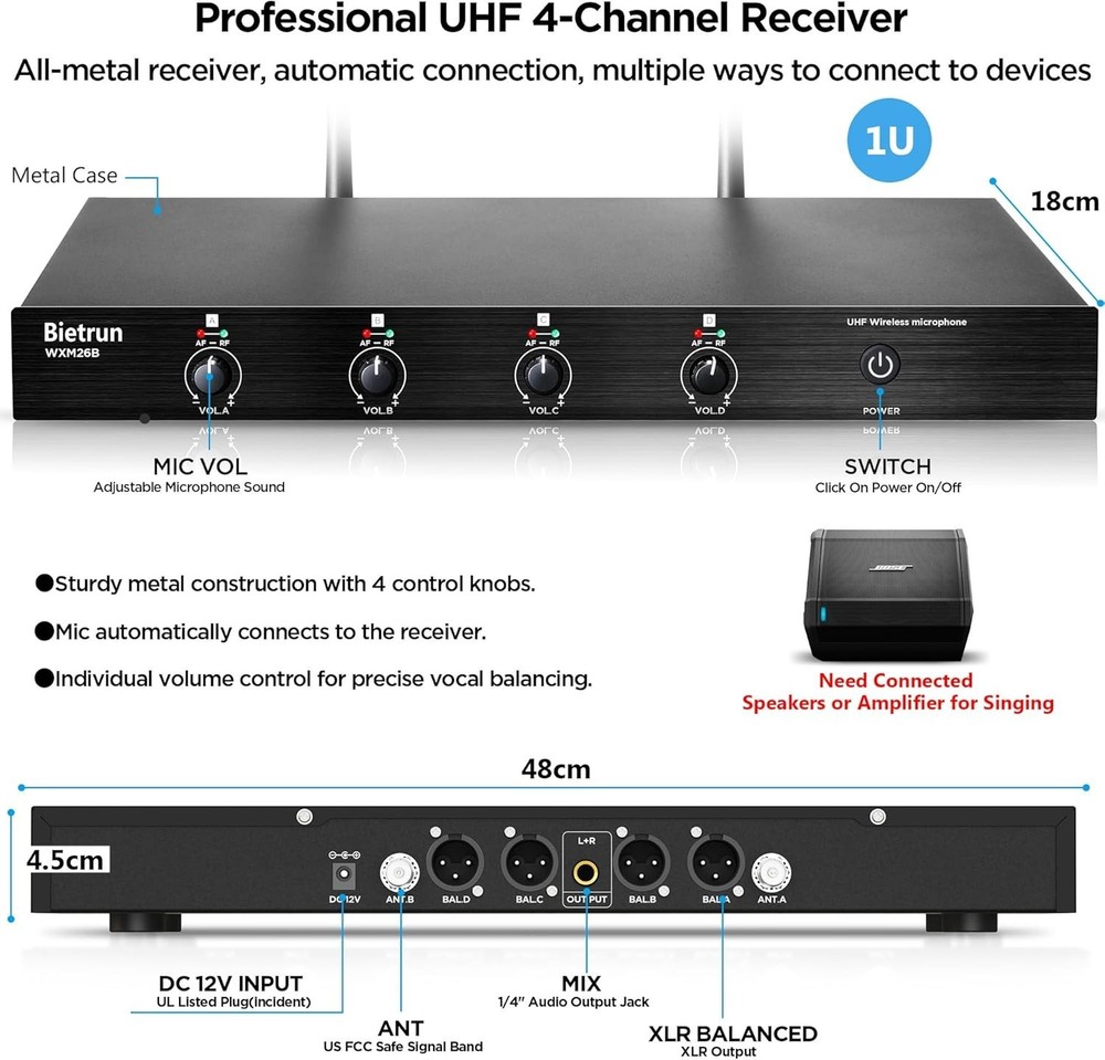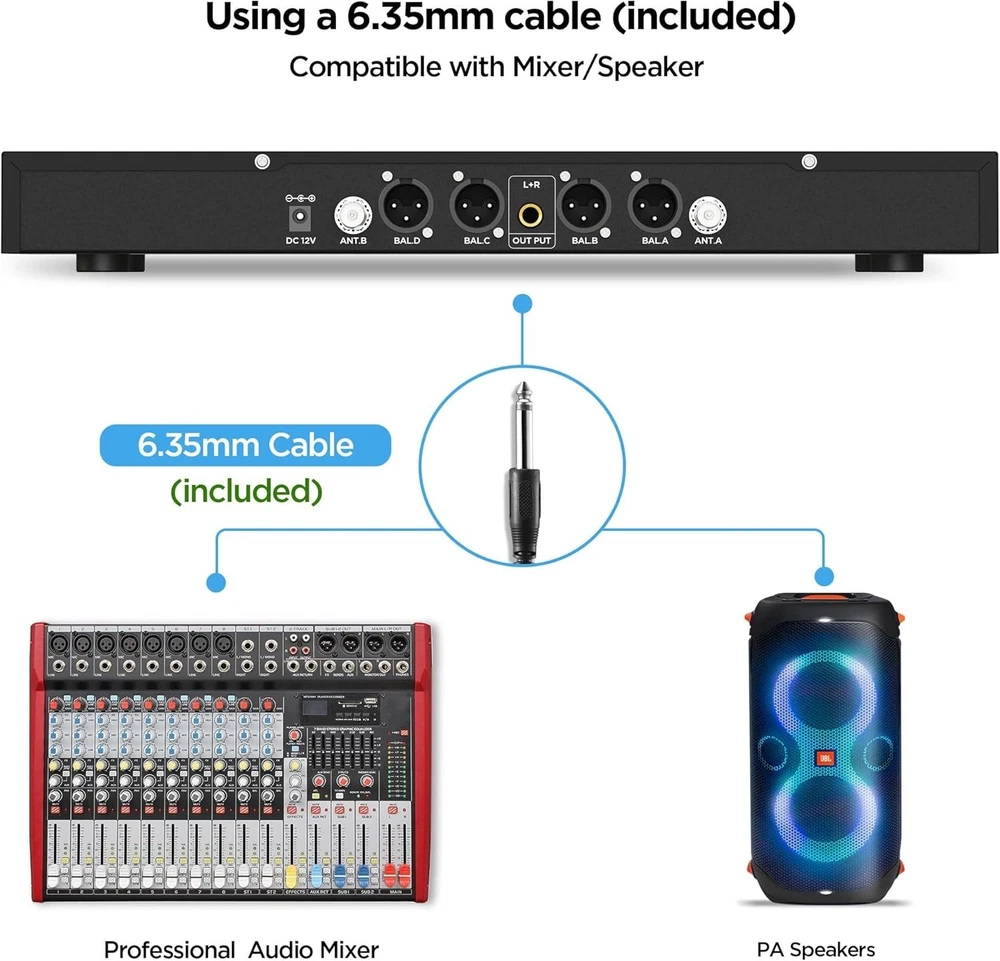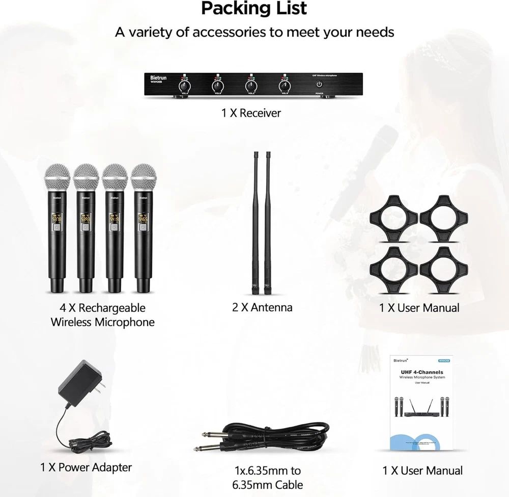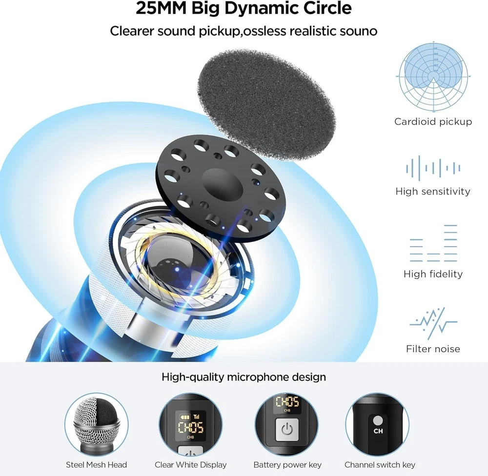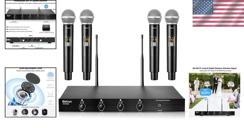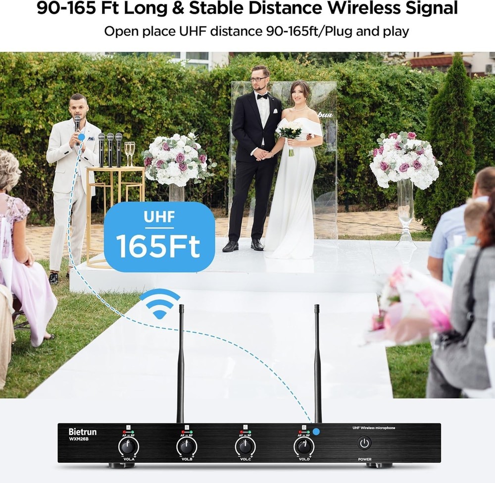 This wireless mic system is a game-changer! Crystal-clear sound, zero interference, and super easy to set up. Perfect for karaoke, church, or events—the 4-channel UHF gives reliable range, and the handheld mics feel sturdy. Love the professional sound quality without breaking the bank. Highly recommend!