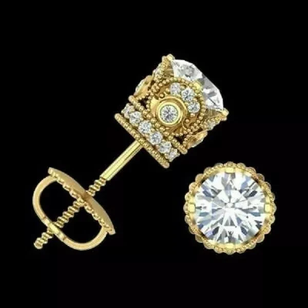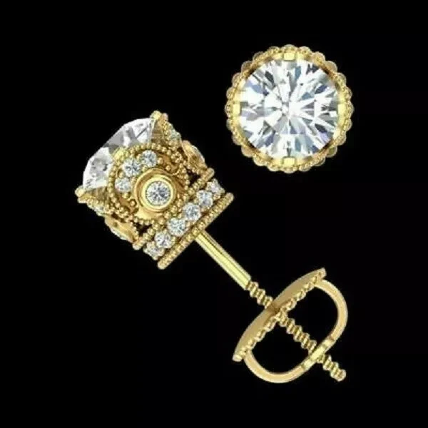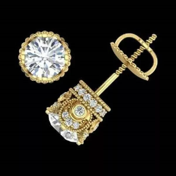 4Ct Lab Created Diamond Solitaire Stud Screw Back Earrings 14K Yellow Gold Over