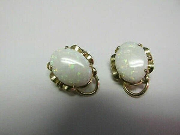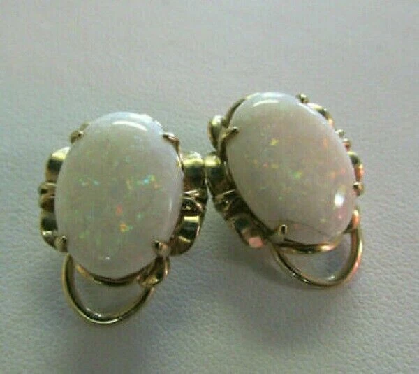 4Ct Oval Cut Opal Women's Omega Back Stud Earrings 14K Yellow Gold Finish