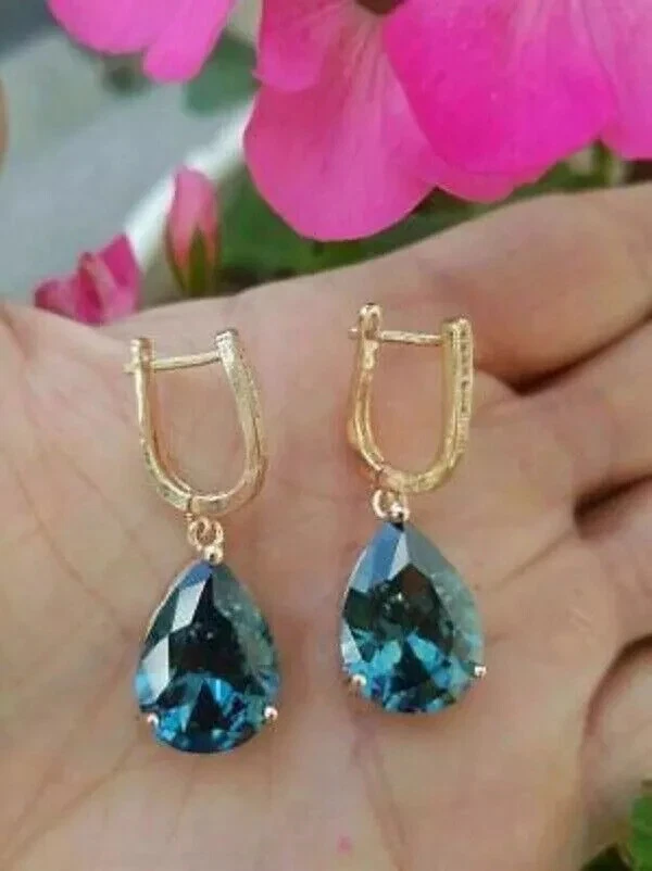 4Ct Pear Cut Blue Topaz Solitaire Drop/Dangle Earrings 14K Yellow Gold Finish