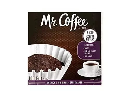 100-Count Coffee Filters for Mr. Coffee JR-4 – 4-Cup Coffee Maker Filters (Made in USA) Premium Coffee Filters for a Smooth & Mess-Free Brewing Experience Brew the perfect cup of coffee every time with these 100-Count Coffee Filters , designed specifically for the Mr. Coffee JR-4 4-Cup Coffeemaker . Made in the USA from natural, renewable resources , these high-quality paper filters ensure superior filtration, durability, and a clean, rich taste . ✨ Key Features & Benefits: • ☕ Perfect Fit – Designed for Mr. Coffee JR-4 and most 4-cup cone coffee makers . • 🌱 Natural & Eco-Friendly – Made from renewable, unbleached paper , ensuring a pure coffee taste . • 💪 Strong & Durable – Thicker paper & ridged construction prevent collapsing, tearing, or overflow . • 🚫 Mess-Free Brewing – Effectively traps coffee grounds & oils for a smooth, sediment-free cup . • 🗑️ Easy Cleanup – Disposable filters allow for quick, hassle-free cleanup after brewing. 📦 Package Includes: ✔ 100 x High-Quality Coffee Filters (Fits Mr. Coffee JR-4 & Most 4-Cup Makers) Why Choose These Coffee Filters? ✔ Enhances coffee flavor by filtering out oils & sediment ✔ Sturdy design ensures no mess or overflow ✔ Eco-friendly & made from renewable materials ✔ Proudly made in the USA for premium quality 🛒 Order Now and enjoy a cleaner, smoother, and richer coffee experience with these high-quality, durable coffee filters!