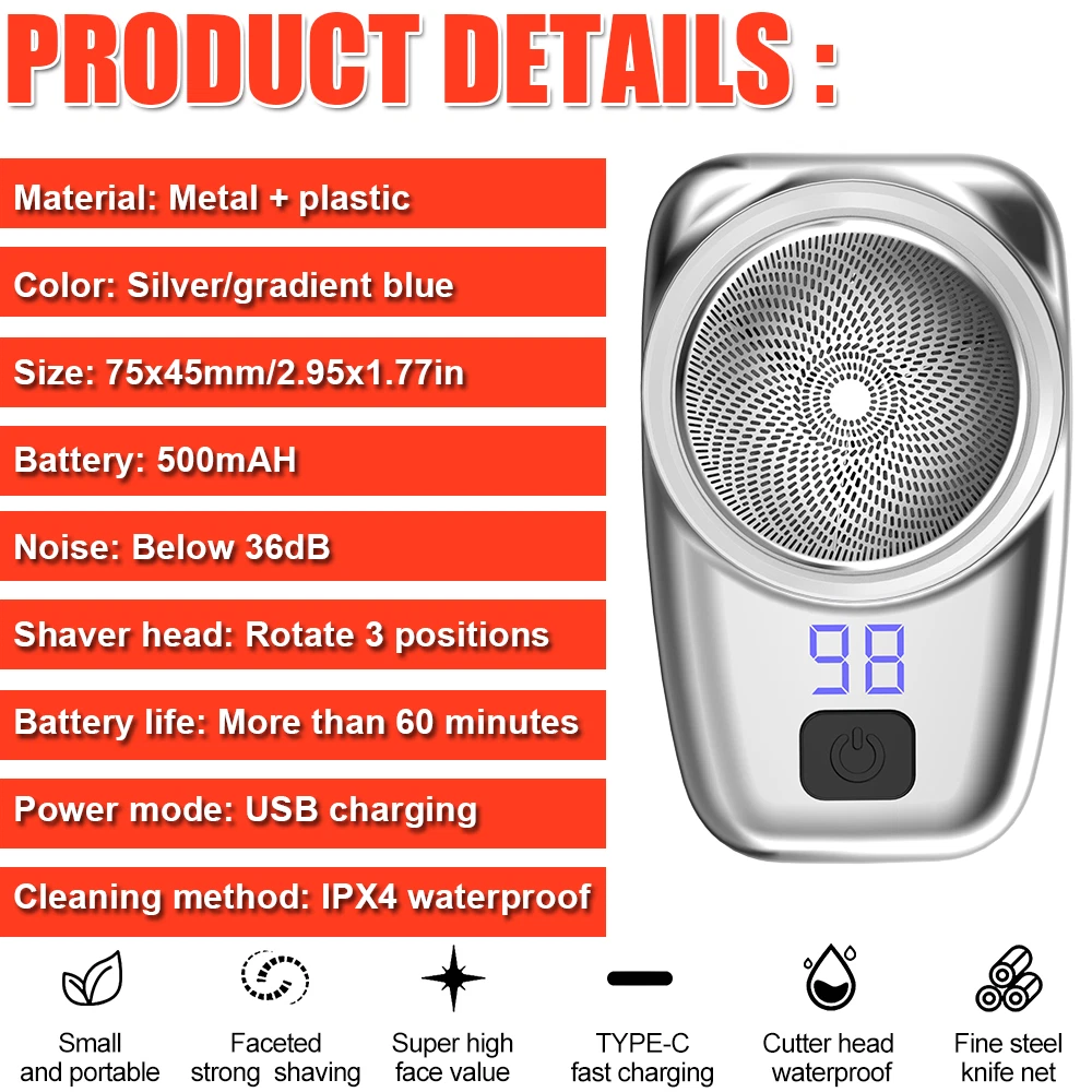 Country/Region of Manufacture: China Brand: Unbranded Type: Shaver Kit Body Area: Back, Body, Face, Pubic Features: Adjustable Speed, Built-In Moisturizing System, Cleaning Indicator, Cleaning System, Cordless, Dual Voltage, Folding Blade, Hair Trimmer Option, LED Display, Low Battery Indicator, Pivoting Head, Quick Charging Time, Rechargeable, Replacement Blades, Smartlight, Swivel Cord, Travel Case, Travel Size, Washable, Waterproof, Wet/Dry Head Type: Beard Trimmer Motor Type: Rotary Power Source: USB Charging Color: Green Item Length: 3 in Department: Men Item Weight: 2 lb Number of Heads: 1