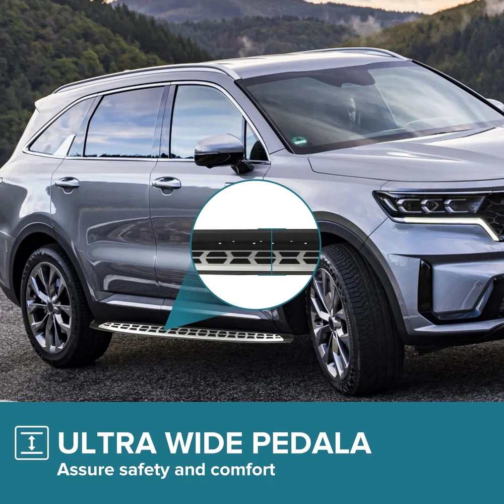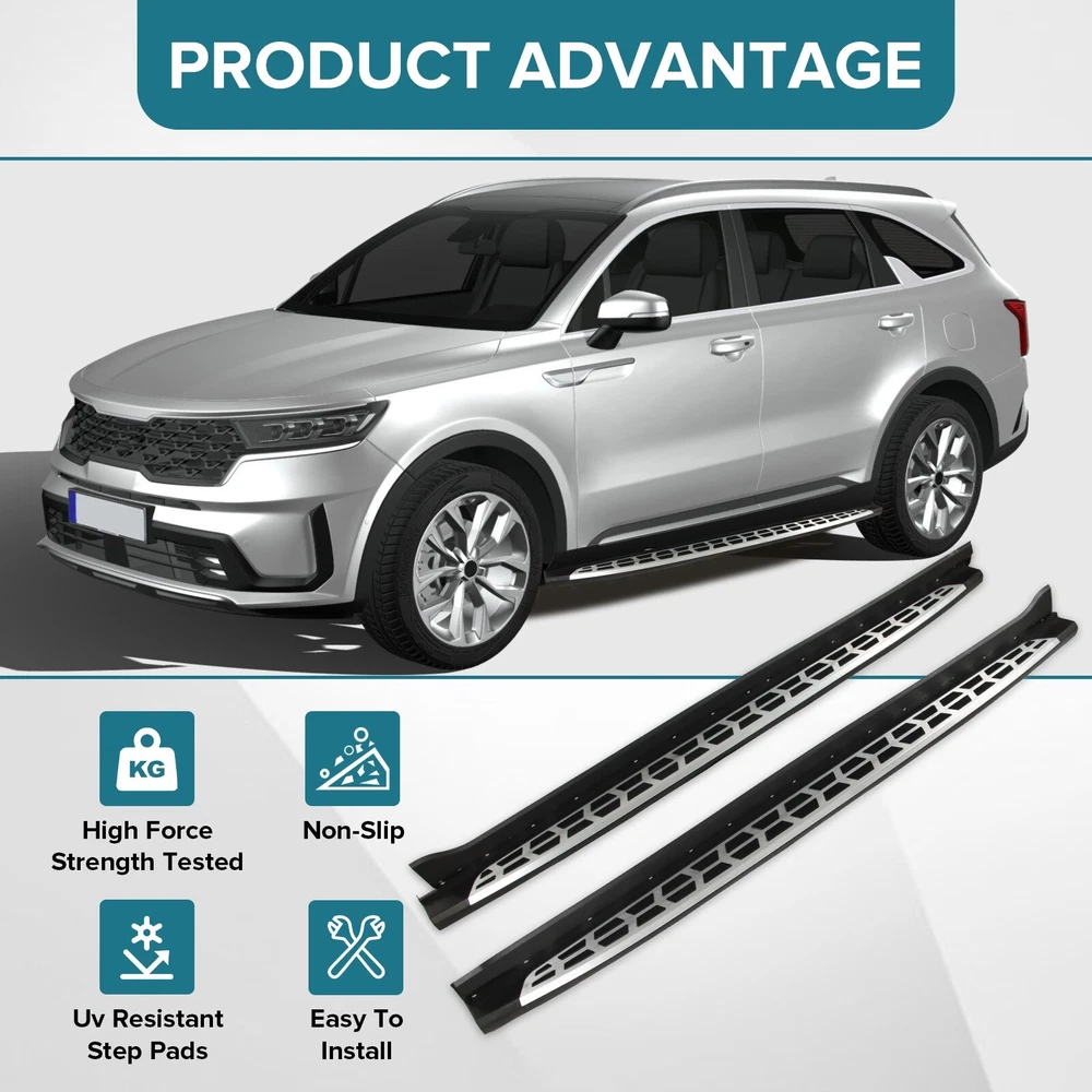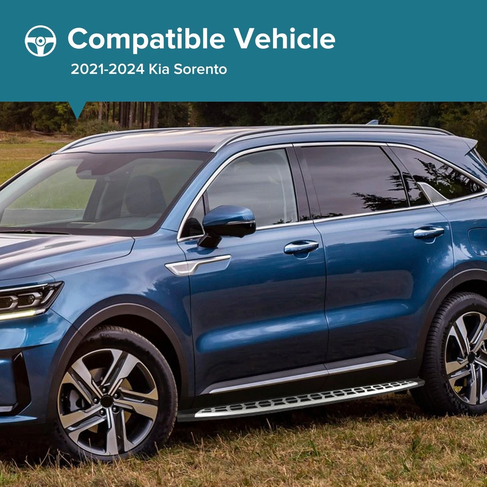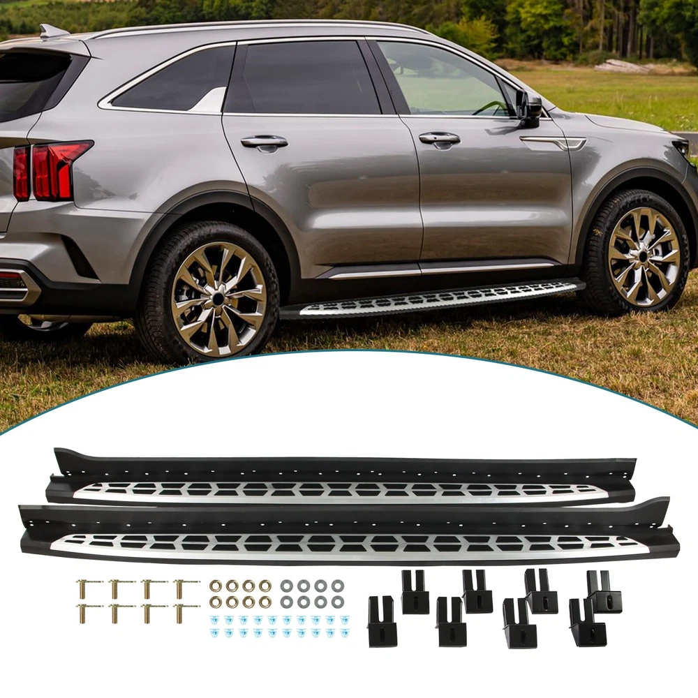 Specification Color: Black+silver Type: Step Nerf Bar Placement on Vehicle: Left, Right Fitment Type: Performance/Custom Material: Stainless Steel,ABS Shape: Rectangular Mounting Hardware Included: YES Package Size: 77.95*12.01*8.27 Package Weight: 28.66 Fitment 2021-2024 Kia Sorento Features & Benefits 1. High-Grade Construction: These running boards, also known as Side Steps, are made from high-grade Stainless Steel. This makes them lightweight yet extremely durable, perfect for long-term use. 2. Weather Resistant: Built tough, these running boards are highly resistant to corrosion. They perform well in all weather conditions, making them a reliable addition to your vehicle. 3. Easy Assembly and Removal: These running boards are designed for easy assembly and removal. This means you can easily install them when needed and remove them when not in use. 4. OEM Replacement with Quality Guarantee: These running boards serve as the perfect OEM replacement. They come with a quality guarantee, ensuring that you get the best value for your money. 5. Enhances Vehicle's Exterior: Apart from their functional benefits, these running boards also provide a great upgrade for your vehicle's exterior look. Please ensure to check the compatibility of these running boards with your vehicle before ordering. Feel free to contact us if you have any questions. On Nov 19, 2024 at 02:02:29 PST, seller added the following information: On Nov 22, 2024 at 02:46:24 PST, seller added the following information: