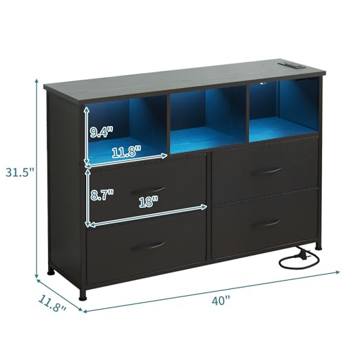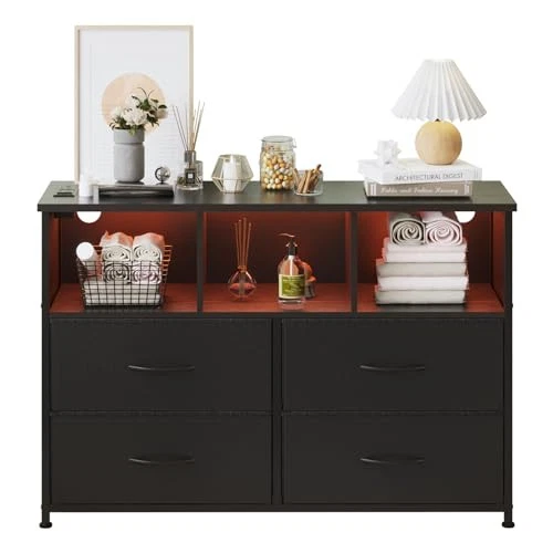 Return Policy Fast Delivery Trusted seller 4-Drawers Dresser with 3 Open Storage Shelves, Fabric Dressers Drawers for Bedroom, Hallway, Nursery, Closets, Steel Frame, Wood Top, Easy Pull Handle (Black) Product Description [ Dimension ] 39"W x 11.8"D x 31.5"H; Dimension of drawers: 17.9"L x 11.8"D x 8.6"H; Dimension of shelves: 12.8"W x 11.8"D x 8.6"H [ 3 Open Storage Shelves Design ] The difference between the Drawer Dresser and other products is that the drawers dresser with 3 open storage shelves design, which can storage items that are frequently used or other things [ Large Storage Space ] 4-drawers dresser that is including 4 large deep drawers and 3 open storage shelves, which can meet your storage needed; All the drawers with handle, which is easy to pull-out the drawers, very convenient [ Sturdy and Durable ] The drawers with strong steel frame, high-grade fabric and waterproof wood top, with foot pad to make sure the dresser drawers stable; the dresser drawer can be use for years indoor; The wooden top is great for your handbag, caps, keys, umbrella, earphone, keeping them in your reach; Can also place plants, vase and cosmetic storage boxes [ Keep Room Tidy ] The storage dresser take full advantage of vertical space, when your messy clothes now to go, stack up and put it into the dresser drawers - wver clutter, tidy soon; Give you a comfortable environment and bright mood Shipping Returns Payment Shipping Shipping is FREE to all addresses other than APO/PO boxes in the lower 48 states. All our stock ships from US-based warehouses. Shipped via USPS or UPS (depending on location and package weight) Unless stated otherwise, all orders will ship within 24-72 hours of your payment being processed. Check our feedback to see the great reviews of FAST shipping we offer. Returns Seller does not accept returns Payment We currently accept payment via eBay managed payments only. Once payment is cleared, we will dispatch your shipment within 1-3 business days. Please refer to the "Shipping" tab for more information regarding shipping speed to your destination.