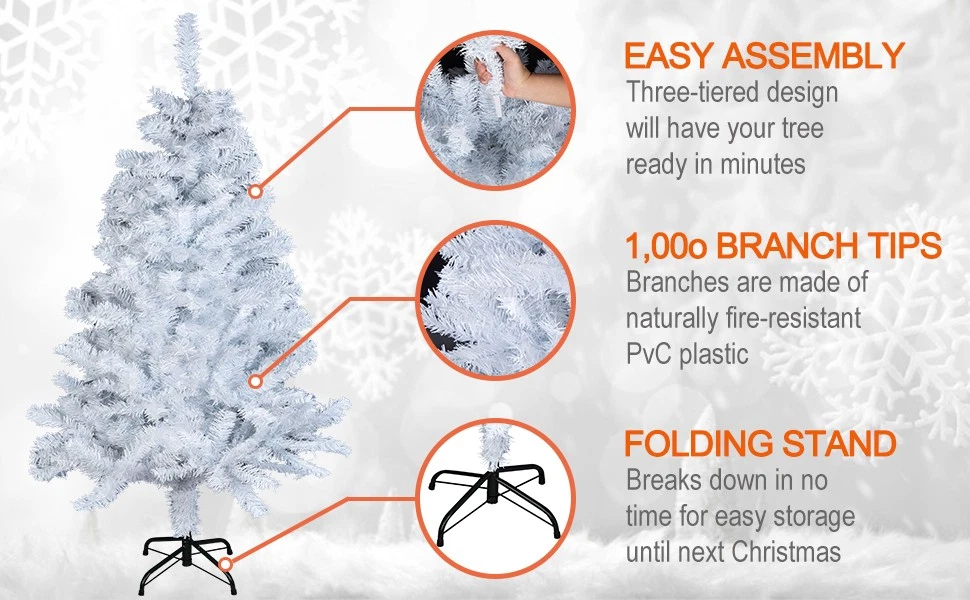 Material: Plastic/PVC/Metal Theme: Party Decorations Brand: TKOOFN Colour: White Product: Houseplant EAN: Does Not Apply Shape: Tree UPC: Does not apply Height: 4ft/5ft/6ft/7ft Artificial/Fresh: Artificial gtin13: Does not apply Number in Pack: Less Than 10 Occasion: Christmas/New Year MPN: Does not apply Type: Christmas tree Style: Christmas Tree