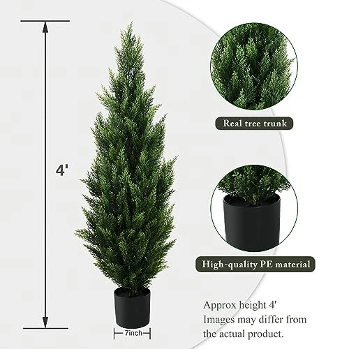 Return Policy Fast Delivery Trusted seller 4FT Artificial Topiary Tree Beautiful Realistic Faux Cedar Pines Christmas Trees UV Rated Fake Shrubs for Front Porch Faux Plants Indoor and Outdoor Decor (2 Pack) Product Description Realistic Artificial Topiary Trees - A fabulous set of 4 upgraded quality faux trees. Perfectly modeled after lovely cedar and pine trees that grow wild in many parts of the US and Canada. These look like the real thing, but never require planting, water, fertilizer, or trimming. Simply set them out and enjoy. No need to place plastic bags over your cedars in winter like the neighbors. Extra Tall 4 Feet - These measure a tall 48" from bottom to top with a lush green appearance that always pleases. Trees are compactly packed in a thicker box for safe shipping. Set them out and allow a day or two for the branches to expand to their natural full look. Perfect for front yard, in planter boxes, along a walkway or driveway, or set indoors for a year round Christmas tree to add life and natural energy to any room. Durable 7" Pot - We go the extra step of making our pots larger, much thicker, and far more durable. Pots won't arrive cracked like those sold elsew. These heavier pots are stable and won't tip like others. They are ideal for placing inside your fancy stone or wood planter. UV Resistant for Years of Enjoyment - Made of top quality plastic to last and look good for 3-5 years of impressive decoration depending on your local climate. You can set them and forget them with no gardening or green thumb required. Great Gift Idea - Makes a fun gift for anyone who wants to decorate their yard with easy natural looking faux trees and greenery. We use a thicker, higher quality pot and ship in a well packed heavy duty box. If your product arrives damaged, please contact us immediately for a no-cost resolution. Many people are buying several 2-packs of trees to fully decorate their yard. They are selling fast after being spotlighted by professional landscapers as a great value. Shipping Returns Payment Shipping Shipping is FREE to all addresses other than APO/PO boxes in the lower 48 states. All our stock ships from US-based warehouses. Shipped via USPS or UPS (depending on location and package weight) Unless stated otherwise, all orders will ship within 24-72 hours of your payment being processed. Check our feedback to see the great reviews of FAST shipping we offer. Returns Seller does not accept returns Payment We currently accept payment via eBay managed payments only. Once payment is cleared, we will dispatch your shipment within 1-3 business days. Please refer to the "Shipping" tab for more information regarding shipping speed to your destination.