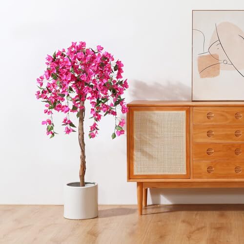 This lifelike 4FT faux bougainvillea tree is stunning! The pink flowers and wooden trunk look so natural—perfect for indoor or outdoor spaces. Easy to reshape, it instantly brightens any room. Lightweight yet sturdy, and the seller delivers fast. Absolutely love it—great quality for the price!