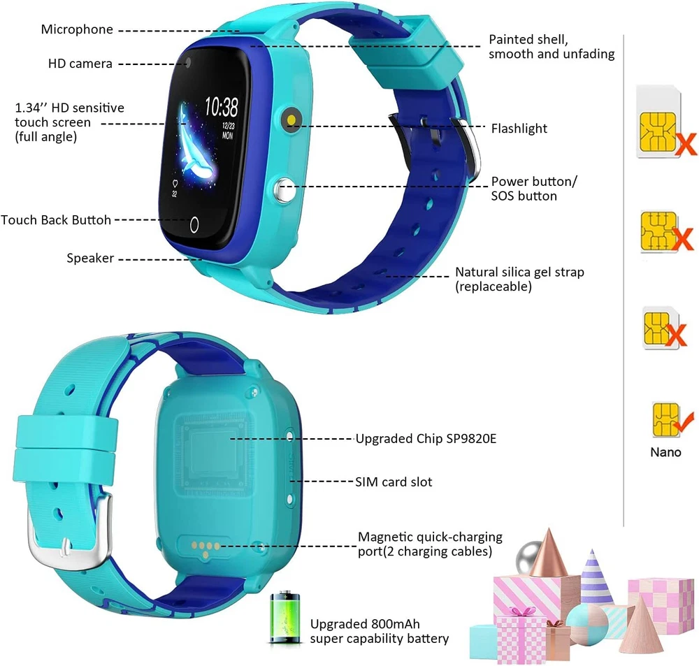 Similar Items Description The Perfect Watch for Children! Great Gifts for holidays/birthdays! Perfect Toys Gifts for Girls and Boys! A Great Gift for Children: Our multi-functional kids' smart watch is great electronic learning toy, which will be a good choice for boys girls age 3-14 years old. Perfect gifts for Christmas gift/ Birthday gift/ Children's Day/ New Year, any holiday, and other festivals. If you want to give a gift to children, this is a very good choice, please don't miss it. For birthdays, Christmas, Halloween or New Year's Day, this may be the best choice for children. It is very suitable for gifts to sons, daughters, nephews or other relatives and friends. The kids must will love it. Some Q & A Q:How does it work: (You should do these steps one by one) A:Step 1: Make sure your sim card is activated, you can test it on your cell phone. Step 2: Turn off the watch first(Must turn off, otherwise unknown error) Step 3: Insert a Nano SIM card(with data plan and call function) inside the SIM slot. Step 4: Turn on the watch and wait for 5 seconds. Done. Enjoy the new watch. Step 5: Download the App (SeTracker2) on your mobile, scan the QR code on the user guide to download App, register your account to log in App. Step 6: Realize all the functions via the App. Q: How to activate the SIM card? Where to insert the SIM card? A: Before buying a watch, please make sure your area is covered with 4G network for the sim card to work. please check the T-mobile or AT&T coverage map. You need to insert the purchased 4G Nano SIM card into the mobile phone to make a call and activate it, and then insert the SIM card into the card slot on the watch side. (View the installation method of the picture) If there is any question about the watch you can find us via e-mail(Contact path: Please go to the product page to find "sold B huijieus" and click "ask a Q"), we will try our best to help to solve, thank you. GPS TRACKER FOR KIDS Cell Phone Watch for Boys Girls Material: Plastic, Silicone Watch strap length: 9.4“ SIM card: Nano SIM Battery capacity: 800mAh Standby Time: 7 Day Color: Provide 6 colors for you to choose With a Replacement Strap: Smart Watch with the same color cartoon dinosaur replacement strap Note: When charging, place the watch flat with the screen facing down to allow the magnetic charger to charge more stably WHY CHOOSE OUR SMART WATCH Support 4G/Wifi Connection Immediate Communication Real-time GPS Tracking Two-way Video Call IP67 Water-resistant SOS Emergency Call Kids School Mode HD Touch Screen Other functions: Flashlight, Math Game, HD Camera, Remote Power Off, Safety Fence, Bluetooth, Multi-Language, Custom Wallpaper, Time and Date, etc. Payment 1.We accept PayPal only. 2.All major credit cards are accepted through secure payment processor PayPal. 3.We ship to your eBay or Paypal address. Please make sure your eBay and Paypal address is correct before you pay. Shipping 1.We ship to your eBay or Paypal address. Please make sure your eBay and Paypal address is correct before you pay. 2.Items will be shipped within 1 business day when we received payment. 3.Delivery time depends on destination and other factors; 4.International buyers please note: a.Import duties, taxes and charges are not included in the item price or shipping charges. These charges are buyer’s responsibility. We will try our best to reduce the risk of the custom duties. b.Please check with your country's customs office to determine what these additional costs will be prior to
