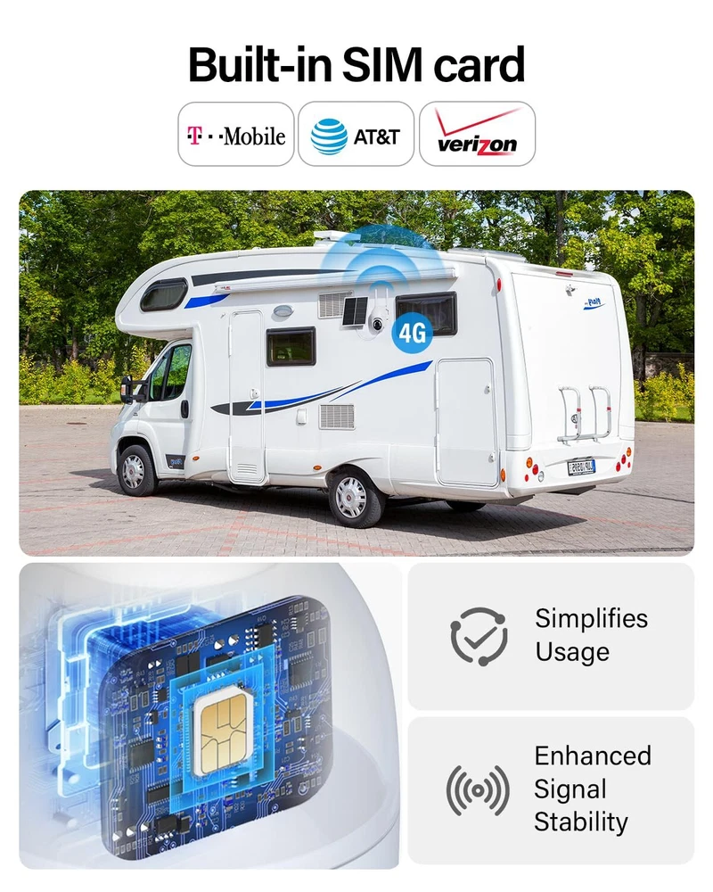 cellular security camera 【No WiFi & No Electrical Wire Needed】The cellular security camera is designed specifically for use in places without a network or even wires, making it ideal for barns, farms, ranches, construction sites, vacation homes, warehouses, and RVs. (Wi-Fi connection is not supported) 【Non-Stop Solar Powered】The no wifi solar-powered security camera features a built-in 10400mAh high-capacity rechargeable battery. Through a 6W solar panel, it makes a constant power supply, eliminating the hassle of frequent takedowns and charging. No need to charge for 365 days. With an IP65 waterproof rating, they are designed to withstand diverse environments, ensuring their long-lasting performance. Provide an ideal solution for outdoor use 【2K Color Night Vision & 360° Viewing】The cameras without wifi needed provide you with 2K resolution to ensure that the video is clear and sharp, while the color night vision allows for accurate color representation even in the dark (Spotlight needs to be manually set on in the APP). Additionally, a wide-angle lens with 355° horizontal rotation and 100° vertical rotation provides a wider and more flexible view angle 【PIR Motion Sensor & Two-way Talk】 This LTE security camera features a sensitive PIR motion sensor that allows the camera to detect motion based on heat signatures. It means the camera can send alerts to your phone when it detects motion. (You can set the sensitivity of this function in the APP). Meanwhile, the camera is equipped with a two-way talk function, you can communicate through the camera from any location and at any time