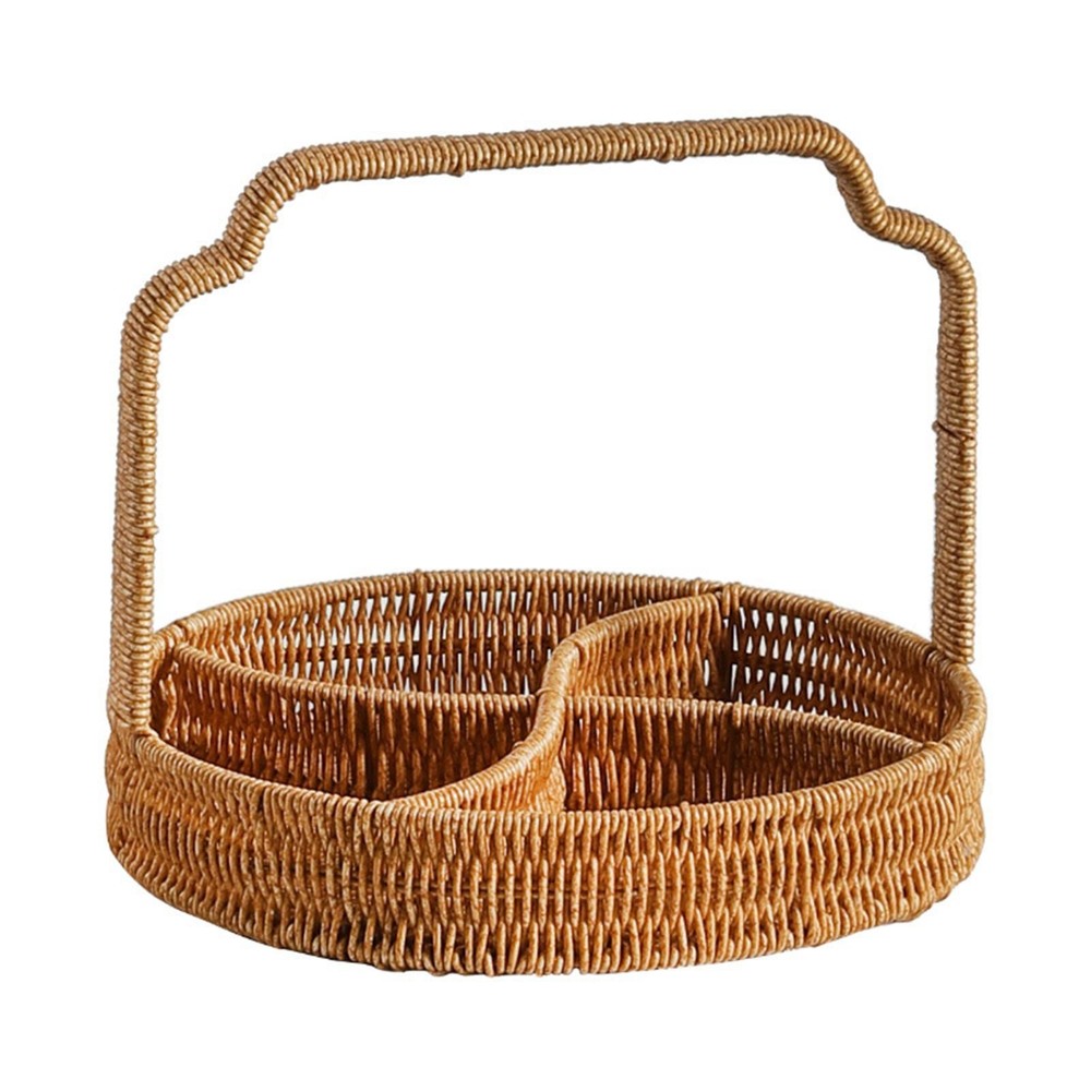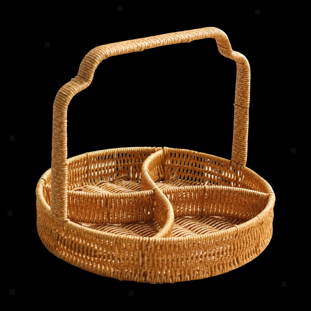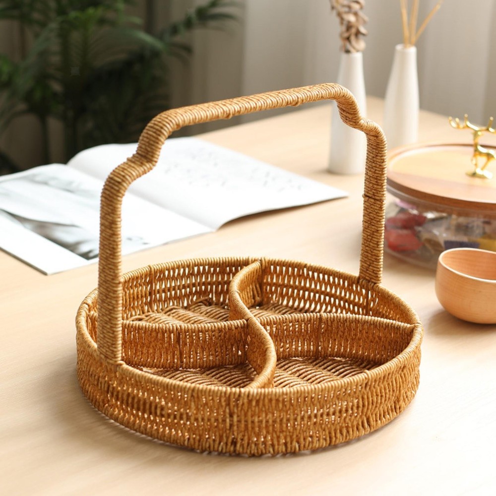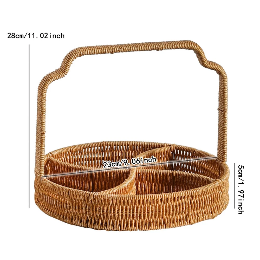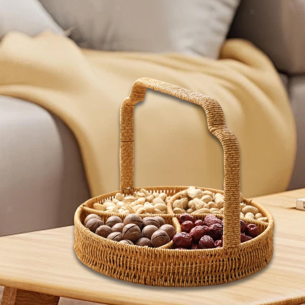 4-Grid Woven Fruit Basket Snack Serving Tray for Kitchen Countertop Bedroom