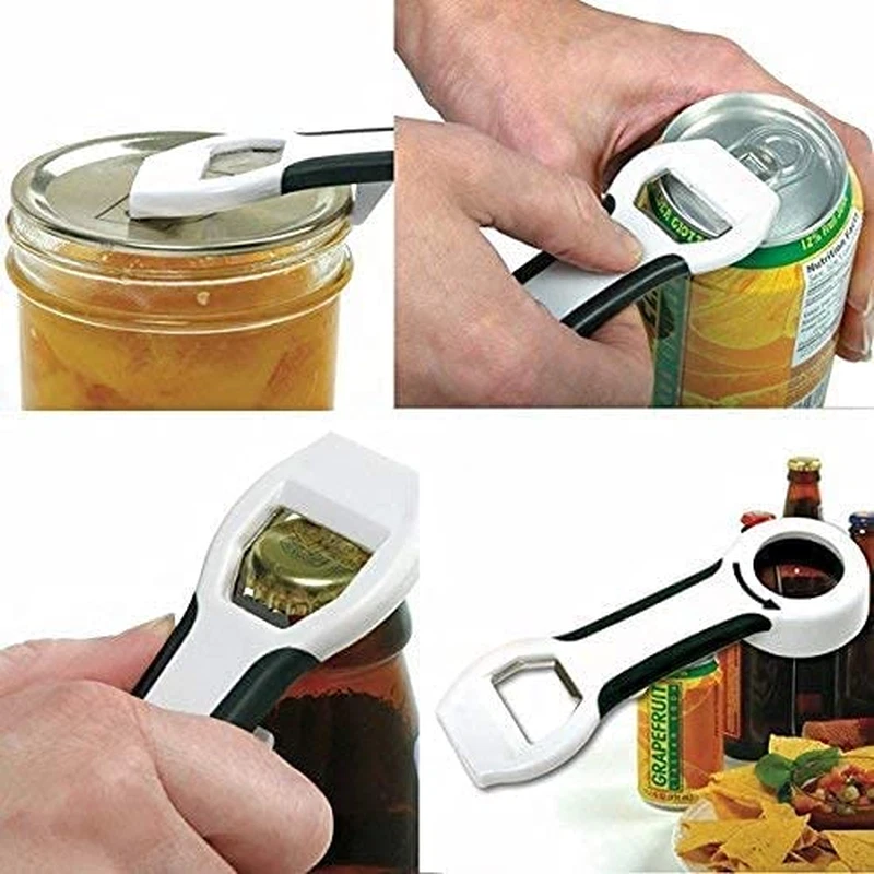 4-In-1 Grip Bottle Opener - Easily Opens Twist Caps, Bottle Caps, Canning Lids