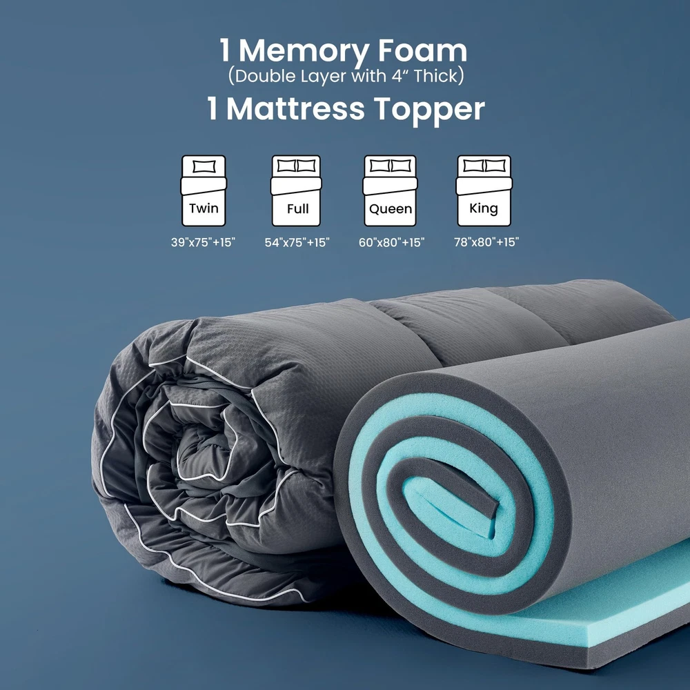 Combination Design: A combination of Extra thick mattress topper and cooling foam provides enhanced softness and support. 2 inch of slow-rebound memory foam deliver better body support and contouring, relieving pressure Waterproof Layer Cover: The top layer features an extra-thick mattress cover, while the bottom is waterproofed to better handle unexpected situations and protect the foam Soft and Cozy: The fabric is made of 3D embossed material with added cooling agents, offering a soft, three-dimensional texture that is comfortable and breathable Made in Green: Certified by MADE IN GREEN and CertiPUR-US, making it safe and friendly for babies, children, and pets Care Instructions: The pillow top mattress topper is easy to care for and can be machine washed. Do not iron or tumble dry at high temperatures. (The foam is not machine washable.)