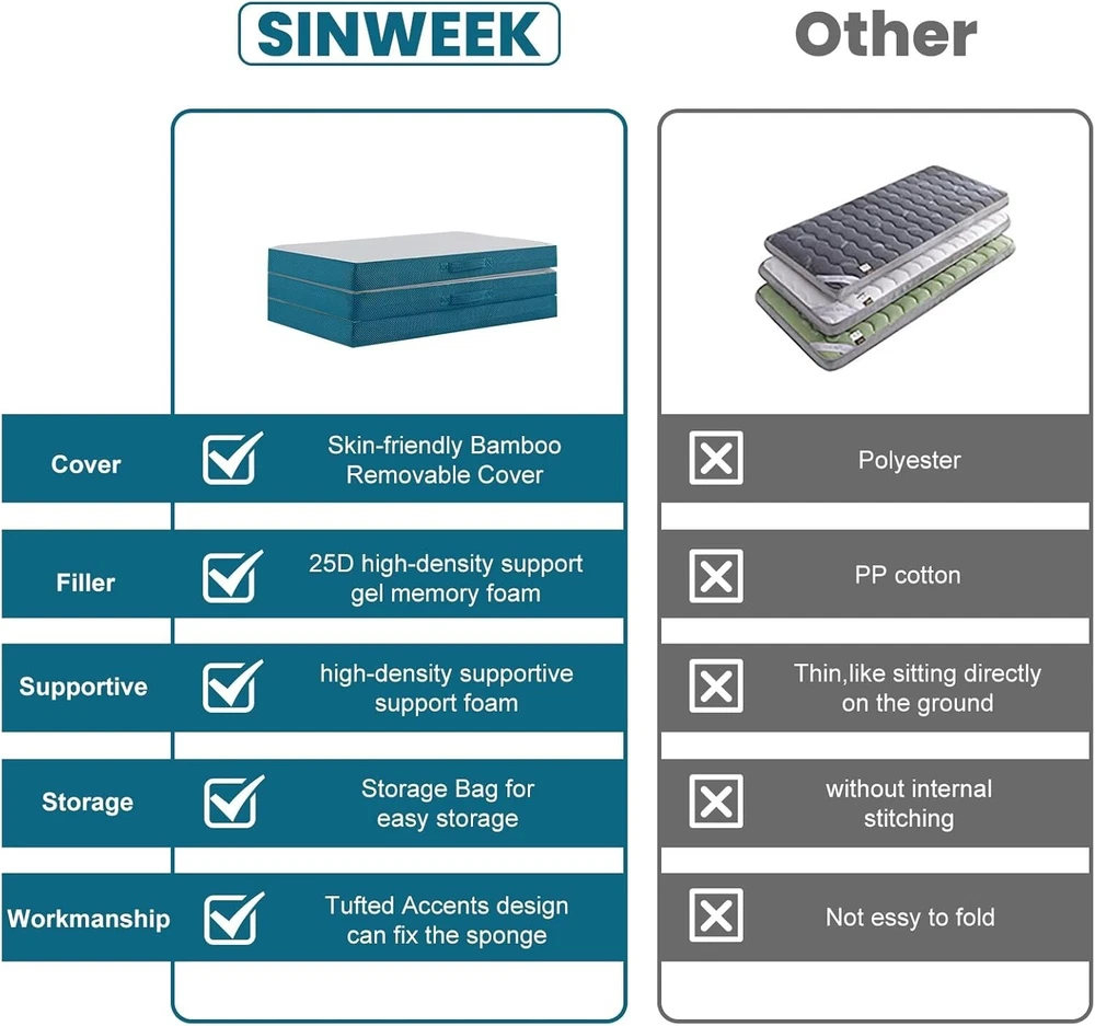 4-Inch Memory Foam Folding Mattress with Pillow & Storage for Travel Comfort ‹ › ‹ › ‹ › ‹ › ‹ › ‹ › ‹ › ‹ › ‹ › ‹ › ‹ › 4-Inch Memory Foam Folding Mattress with Pillow & Storage for Travel Comfort Comfort & Supportive: Experience the perfect blend of comfort and support with our 4" Foldable Mattress, featuring 1-inch of luxurious memory foam and 3-inch high-density foam. This unique combination delivers a medium-firm feel, offering a superior sleep experience no matter where life takes you. Rest assured, this mattress retains its shape for unparalleled performance, even after extended use. Portable & Foldable: Designed for convenience, our Tri-Fold Mattress folds effortlessly, making it the ultimate solution for temporary sleeping arrangements. It compacts into a compact size that fits seamlessly into the provided storage bag, ideal for travel, family reunions, dorm rooms, camping trips, and even yoga practice. Premium Fabric: Crafted with a breathable cover, our mattress combines softness with skin-friendly qualities. The non-slip bottom effectively prevents any movement during use, ensuring your comfort remains uninterrupted. Furthermore, the high-quality zipper at the back promises durability and ease of use. Best Gift: Meeting rigorous quality standards, this folding mattress is a thoughtful gift for family and friends who appreciate comfort. Please note, the mattress is compressed for shipping and will require 48-72 hours to fully expand. Easy Maintenance: Enjoy hassle-free care with the washable cover, allowing for easy removal and machine washing to keep your mattress fresh and inviting. Should any questions arise, our customer service team is here to assist you! Why Choose Our 4-Inch Memory Foam Folding Mattress? Your quest for a versatile and comfortable sleeping solution ends here. Whether it's for guests, spontaneous getaways, or everyday comfort, our folding mattress offers the perfect combination of support, portability, and easy maintenance. Elevate your travel experience and rest in luxury, no matter the setting. Transform your sleeping arrangements – order your 4-Inch Folding Mattress today! Shipping Free & Fast Shipping - We offer free shipping to most of the USA with a normal delivery time of 3-7 days. However, due to the current situation, additional delivery time (up to 3 weeks) may be required for some items. Alternative Carriers - We may use alternative carriers (e.g. USPS, FedEx, UPS, etc.) to ensure your package arrives safely and on time. Due to the use of multiple carriers, we are unable to provide a tracking number automatically. Handling Time - Orders are processed and shipped within 1-2 business days of receiving cleared payment. Shipping Restrictions - Shipping to Alaska, Hawaii, Puerto Rico, Guam, and other US territories may incur shipping charges or delivery restrictions. Please contact us before ordering, or your order can be refunded/cancelled. State Restrictions - There may be restrictions based on your state of purchase. For example, certain items may not be shipped to California due to state regulations. Contact for Tracking Updates - If you require tracking updates or have any concerns about the delivery of your order, please feel free to contact us, and we will be happy to assist you. Return 30-Day Hassle-Free Returns - We want you to be completely satisfied with your purchase. If you are not, you can return the item within 30 days of receiving it for a full refund or exchange. Easy Return Process - To start a return, simply contact us and we will provide you with a prepaid return shipping label and detailed instructions. Restocking Fee - There are no restocking fees for returns. However, the buyer is responsible for return shipping costs if the return is not due to a seller's error. Refund Processing Time - Refunds will be processed within 5 business days of receiving the returned item in its original condition. Payment We accept all major credit cards, PayPal, and Apple Pay for your convenience. Your payment information is secure and encrypted to ensure a safe and seamless transaction. Please complete your payment within 3 days of purchase to avoid any delays in shipping. Feedback Your feedback is extremely important to us. We strive to provide the best products and customer service possible. If you are satisfied with your purchase, please take a moment to leave us a positive review. If you have any concerns or issues with your order, please contact us before leaving negative feedback. We are committed to resolving any problems and ensuring your satisfaction. Contact Us If you have any questions or concerns, please feel free to reach out to our customer support team. You can contact us through the eBay messaging system. We are available Monday to Friday, 9:00 am to 5:00 pm EST, and we will do our best to respond to your inquiry within 24 hours. Buy it now and enjoy a pleasant shopping experience! UPC: Not Set Unit Quantity: 13.22 Features: Foldable,Comfort & Supportive,Portable & Foldable,Breathable Cover,Non-Slip Bottom,High-Quality Zipper,Washable Cover Department: Kids,Teens,Adults Cover Material: Fabric Labels & Certifications: Not Set Brand: Unbranded Firmness: Medium Firm Size: Single Type: Memory Foam Manufacturer: Not Set Thickness: 4 in Color: Multicolor Mattress Breathability: High Product Line: Not Set MPN: Not Set Model: Not Set Theme: Not Set Style: Contemporary/Modern Year Manufactured: Not Set Country/Region of Manufacture: Not Set Item Length: Not Set Manufacturer Warranty: Not Set Item Width: Not Set Number of Springs: 600 Room: Bedroom Pattern: Not Set Shape: Rectangle Item Weight: 13.22 lb Care Instructions: Machine Wash Warm Time Period Manufactured: Not Set Unit Type: lb