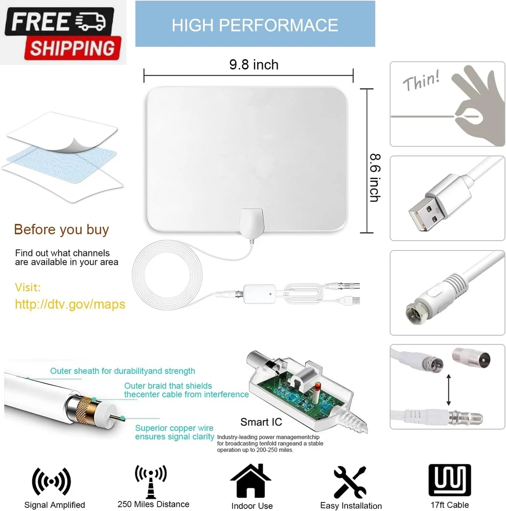 4K Amplified HD Digital TV Antenna Long 1000 Miles Range Support 4K 1080P Fire Tv Stick and All Older Tv'S Indoor Smart Switch Amplifier Signal Booster with Coax HDTV Cable 18Ft(White) ✅【Note 1】: Always remember re-scan for channels after moving the Antenna. Visit - "dtv gov maps" information is useful. ✅【Note 2】: Please switch the amplifier to "short range" if your house is very close to the broadcast tower (within 35 Miles). ✅【ADVANCED TOOL FOR LIFE TO RECEIVE THE CHANNEL WITHOUT MONTHLY BILL! & FULL HD CHANNELS】: With UPGRADED 2022 TV antenna no more need to pay a HUGE bill on TV. Our HD antenna can receive FULL HD Channels like ABC, CBS, NBC, PBC, Fox and SO MUCH MORE. ✅【UP TO 1000 MILES RANGE】: The indoor HDTV antenna can reach up to 1000 miles and can be placed almost anywhere in your Home. Digital antenna constantly scans for new channels as they're made available for broadcast. Hang the indoor antenna on a window or wall, or better position where owns better reception of your House. ✅【FULL HD CRYSTAL-CLEAR TV & HD SOUND QUALITY】: Our smart tv antenna adopts upgraded with new type Smart Switch control Powerful 2022 Amplifier Signal Booster with built-in Smart IC Chip Next generation & Crystal Clear Filter Technology to picks up signals within 200 miles range. The new technology filters out cellular and FM signals resulting in clearer picture, low noise and access to more free broadcast TV signals with enhanced gain, range and frequency performance. Enhance your TV viewing experience with the RUPA 4K Amplified HD Digital TV Antenna. This antenna offers a range of up to 1000 miles, allowing you to access a wide variety of channels including ABC, CBS, NBC, PBC, and Fox, all in crystal-clear Full HD. The antenna is designed for indoor use and can be placed almost anywhere in your home, while the upgraded Smart Switch control Amplifier Signal Booster ensures enhanced gain, range, and frequency performance. If your house is close to the broadcast tower (within 35 miles), simply switch to 'short range' mode for optimal results. For the best reception, hang the antenna on a window or wall. Remember to re-scan for channels after moving the antenna. The antenna is 18ft long and comes with a coax HDTV cable. Experience the freedom of antenna TV with the RUPA 4K Amplified HD Digital TV Antenna. Shipping Fast shipping is very important for us. Our standard US shipping service is FREE. Your order will be shipped within 2-3 business days upon full payment received. Your order will be delivered within 2-3 business days after the handling time. We only ship to the confirmed PayPal address. We reserve the right to cancel any order for any reason at any time. We are not responsible for undeliverable addresses. Returns and payment We offer a 30 days return policy from checkout winning date. We allow only PayPal as payment method FeedBack Your feedback very important to us, after you get your package and you are satisfied with our service please leave us positive feedback If you have any problem with your order / any questions please before leave any type of feedback For any questions, using eBay contact system Please visit our eBay store to check out other items for sale! Thank you for shopping at our store.