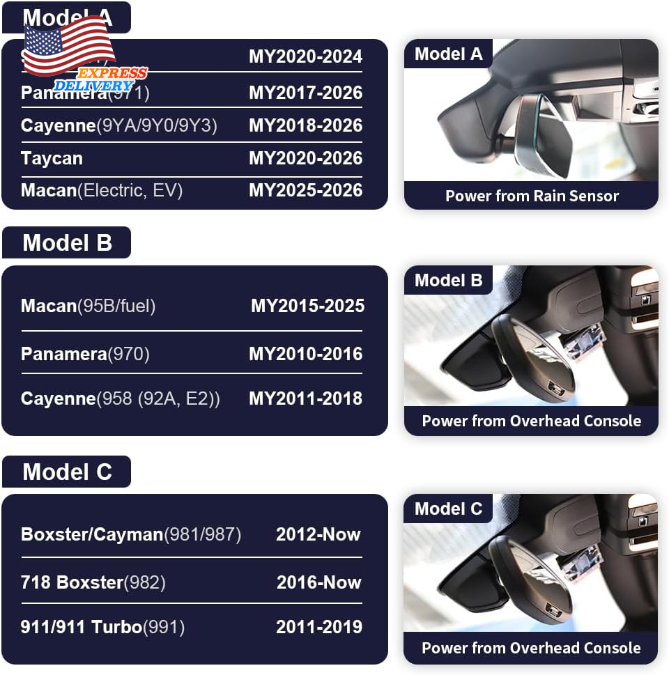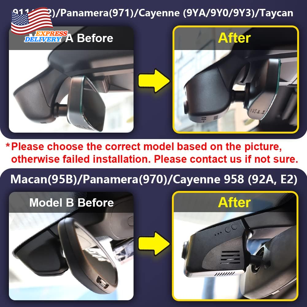 Store New Arrivals Add to Favorite View Feedback Contact 4K Dash Cam Suitable for Porsche Macan 95B Panamera 970 Cayenne 958 92A E2 NEW Description Item model number Model B- 4K Front Only Whats in the box VHS Size Front 4K Only Connectivity technologies Powerline Mounting Type Ceiling Video Capture Resolution Front 2160P Only Color Model B Included Components VHS Product Dimensions 11.42 x 3.54 x 9.06 inches Connectivity Technology Powerline Vehicle Service Type Porsche (Model B) Item Weight 11.2 ounces Batteries 1 Lithium Metal batteries required. (included) Field Of View 170 Degrees Model Name Model B Special features APP, OEM Style Special Feature APP, OEM Style Other display features Wireless OEM Style for Porsche, Model B: Fitcamx dash cam looks OEM from outside, No cable routing needed, No wires show or need to be spliced. It doesn't block drivers vision in any way, very low key. Suitable for Porsche Macan (95B), Panamera (970), Cayenne (958/92A/E2) vehicle styles. *Confirm with FITCAMX if not sure which model fits UHD 2160P Video: Utilizing f/1.6 big arpeture lens, Fitcamx OEM Style camera displays amazing image quality up to 2160P/30fps. Equipped with CMOS Sensor and WDR technology, it can automatically adjust the exposure and eliminate blind spots, thus can capture more details of surrounding and fulfills clear night vision Easy to Operate & WiFi: By connecting with built-in WiFi and FITCAMX APP, you can preview video while on the way, or watch video on PC by inserting the SD card. NO NEED to keep camera's WiFi connected unless in need to download or manage video, because it will auto-record after car starts. (*No affect the use of CarPlay or Bluetooth) Loop Recording & G-Sensor: The camera will overwrite the oldest footage with new content when storage is full, packed with 64GB MicroSD Card and support maximum 256GB. And Gravity Sensor can detect a sudden collision and save the video to specified folder, thus prevent important footage from overwritting. *NO Parking Monitoring Good Quality & Reliable Service: Made of high-density ABS+PC, Fitcamx OEM style dash cam is durable and temperature-resistance, which can work under temperature -20°C to 85°C (-4°F-185°F).. Never miss any moment of your journey. FITCAMX offers prompt response technical support, please feel free to reach us if any using problems Product description *The page you at is Model B! Compare the vehicle style and year, and cover shape of your rearview mirror! Macan (95B, fuel): 2015-2025, NOT EV/Electric Panamera (970): 2010-2016 Cayenne (958/92A/E2): 2011-2018 FITCAMX 4K Dash Cam for Porsche, Model B Integrated OEM Look Suitable for Porsche Macan fuel (95B, NOT EV), Panamera (970), Cayenne (958/92A/E2) vehicles. UHD 2160P Video *The polarizing lens model is based on the camera's version you received, so please confirm with FITCAMX before ordering Do I need to connect the dash cam everytime? Can I use CarPlay/Bluetooth as usual? You don't need to keep camera connected as it will auto-record after car starts. You only need to connect the camera in the need of viewing or downloading video. No affect the normal use of CarPlay or Bluetooth Where is the video stored? Can I view video anytime i want? The video is auto-saved in SD card, not phone. 1. Only if you've downloaded footage to your phone in advance, you can watch it even off the car or remotely. 2. You can also watch it on computer by intserting SD card With front 4k camera installed, can I add a rear cam separately? NO, because the PCB boards are different between single front and dual version. Is the dash cam featured with Parking Sensor? And is it 24h recording? Not all FlTCAMX dash cams has parking sensor, you need extra harness to upgrade with this function. And there are 24h and non-24h recording option, please confirm with FlTCAMX for more details. Why dash cam gets hot? It's normal situation but no worry. 1. The surrounding space of camera is small, and the original parts nearby will cause high temperature. 2. The camera is under windshield which is in direct sunlight by day. The camera will auto-record after car starts No need to keep WiFi connected, unless in the need to download or manage video on APP. Packed with 64GB SD card and support maximum 256GB To view video anytime you want, you shall download the clips from SD card to phone in advance. 1 WiFi & FITCAMX APP 2 Loop Recoding 3 Night Vision Using NOTE No need to keep the camera connected, as it will auto record after car engine starts. Your phone can't be connected to CarPlay and camera WiFi at the same time. Turn off cellular data/bluetooth/VPN if no preview, No affect the use of CarPlay or Bluetooth. Not recommended to watch video during driving, as it will pause the camera recording. The camera's WiFi is not remote. Please download footage to your phone in advance if need to watch it anytime. Featured with audio recording, which can be turned on/off at APP setting. (FITCAMX has many departments, your chaT-info is Non-Synchronized to all teams.) No Parking Sensor of Porsche (Model B) Extra harness is needed for this function Please reach FITCAMX if any problems of installation! 1 Gravity Sensor 2 Upgrade to Parking Mode 3 Installation NOTE Package Contents for Porsche (Model B) Contained 64GB MicroSD card and supported maximum 256GB. (*do NOT order polarizing lens before confirming camera's part number with FITCAMX) ABOUT US We offer the best prices around on high quality products. Our E-store includes media such as books, movies, music and games while offering electronics, toys, sporting apparel, clothing, tools, general home, garden items and more. SHIPPING We are always working hard to ensure your package arrives as soon as possible. Please understand that some factors like weather, high postal traffic, and the performance of shipping companies are outside of our control. We offer free shipping to the lower 48 states and ship within 2 business days of payment, usually sooner. We do no
