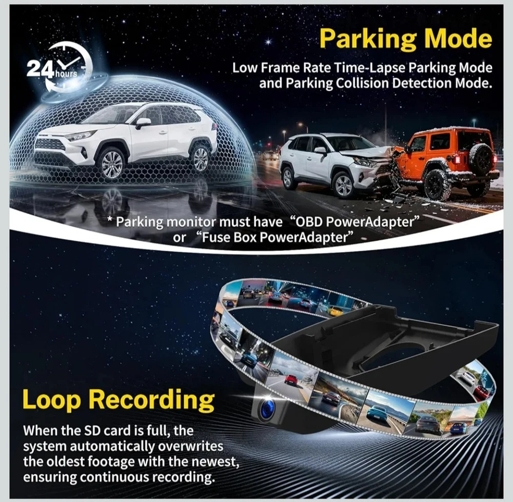 Front 4K Dash Cam fit for 2022-2025 Toyota RAV4 LE Limited SE Adventure XLE XSE (Model B)(with Vent Hole),Easy Installation,Camera 2160P Video HDR,OEM Style,Loop Recording,GPS,5.8GWiFi,G-Sensor. OEM-style for RAV4】This GATGIT RAV4 dash cam maintains your vehicle's factory-style aesthetic, No wiring is required—simply plug directly into your vehicle's original connector,with no bulky suction cups, no messy adhesives, and no tangled wires. It is tailor-made for 2022-2025 Toyota RAV4 LE Limited SE Adventure XLE XSE (with Vent Hole)models and does not obstruct your view after installation Please note: this product is not compatible with other models 【Loop Recording & GPS】When the memory card is full, it will gradually overwrite the oldest videos while preserving the latest recordings. Additionally, emergency footage (e.g., from collisions) is automatically locked to ensure your important videos are never lost. Additionally, the GPS function can be manually activated to record real-time vehicle speed, driving routes, and precise map information—making it particularly suitable for accident evidence collection 【Built-in 5.8GHz WiFi & Smart App】 Connect your smartphone to the dashcam’s built-in 5.8GHz WiFi to enjoy ultra-fast downloads up to 20MB/s. Using Mobile app,you can preview, download, and replay videos in real time, check GPS ata (route, speed, and location), and manage settings effortlessly, making it simple to review footage and share important moments 【4K (3840*2160p) Resolution with HDR】Engineered with an f/1.6 aperture lens and a high-sensitivity CMOS sensor, this 4K integrated dash cam captures ultra-sharp 2160P video at 30fps — so detailed that even fast-moving license plates stay readable.With HDR technology, it balances light and shadow intelligently, delivering vibrant, well-defined footage even in challenging low-light conditions. Whether it’s a dark street or backlit highway, everything remains sharp and clear 【24/7 Parking Mode* & G-Sensor】 Enjoy round-the-clock protection with two parking modes: time-lapse recording for continuous low-bitrate monitoring and G-sensor mode that records when collision is detected. The car security camera with G-sensor automatically locks important clips, ensuring crucial evidence is safely preserved even while your vehicle is parked.(Hardwire kit needed ASIN:BOGHFZDHGZ or ASIN:B0GL212SJN)