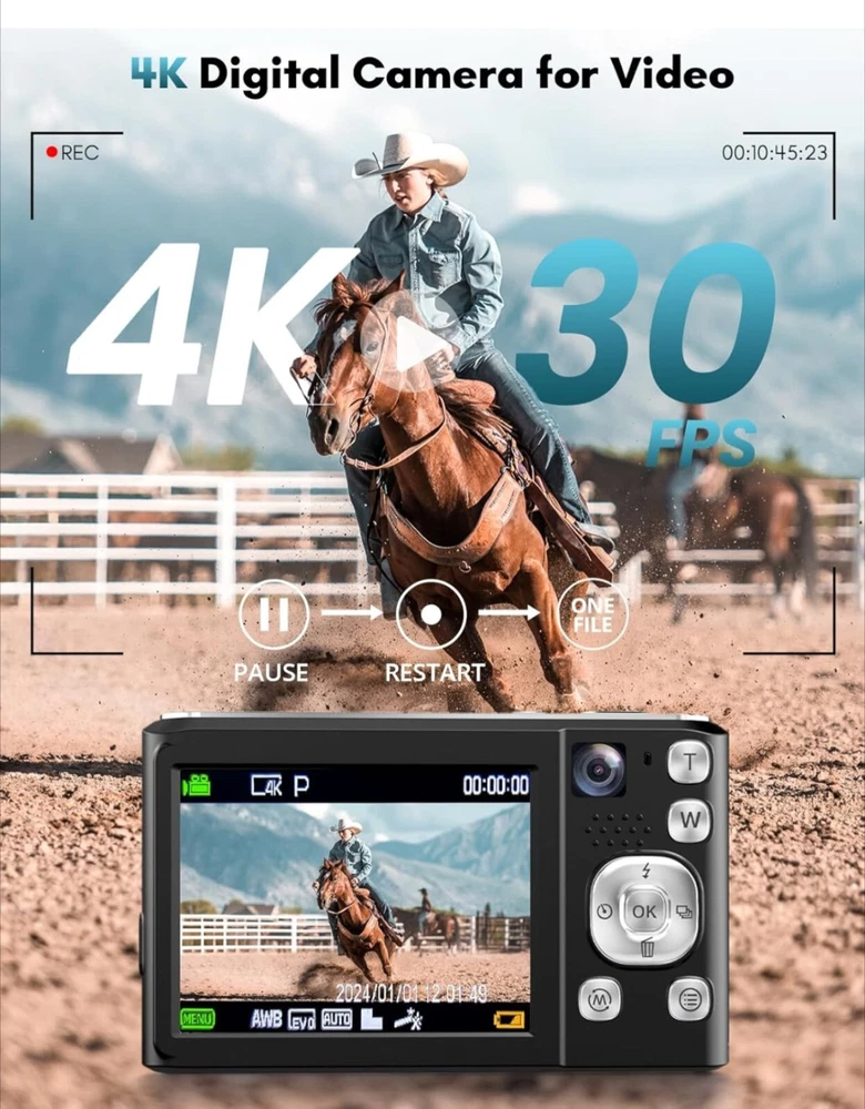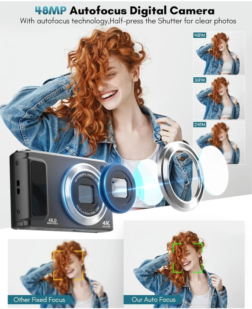 4K Digital Camera, 48MP Autofocus Cameras for Photography,Vlogging Compact...