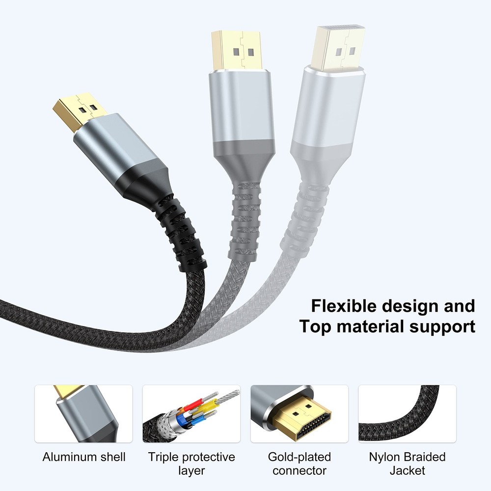 This cable is a game-changer for anyone needing a reliable DisplayPort to HDMI connection! It delivers crisp 4K video and clear audio without any lag, perfect for gaming or streaming. The build feels sturdy, and the 5ft length gives just enough flexibility for most setups. Plug-and-play simplicity—no drivers needed! Works flawlessly with my monitor and TV. Highly recommend for hassle-free high-definition connectivity.