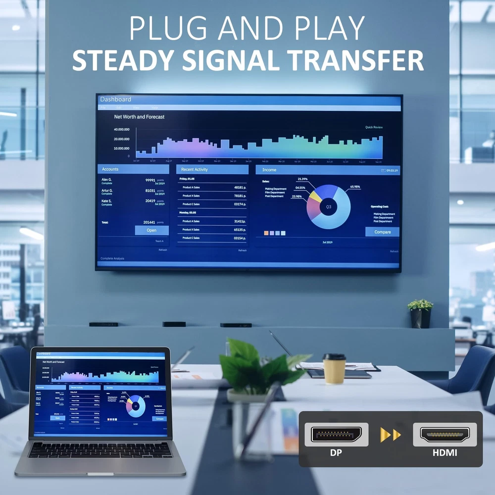【DP to HDMI Cable】: Connects a computer or device with a DP port to a display with HDMI input to transfer audio and video from the computer to a high-definition display. Note: this cable is uni-directional, only from DP devices to HDMI displays. 【Advanced Technology】: Featuring pure oxygen free copper as a conductor for more stable transmission. using industry-leading integrated injection molding technology. Step into the future with the 4K DP to HDMI cable. Each cable has been tested separately to support the highest standard of 4K. 【4K@60Hz Visual Feast】: Supports up to 4K UHD resolution at smooth 60Hz, backward compatibility with 2K@120Hz, 1440P@60hz and 1080P@120hz. Ensures synchronized high-definition audio and video for an immersive streaming or gaming experience. 【Premium Materials】: 24K gold-plated connectors is corrosion resistant and multi-layer copper shield are used to minimize signal loss. The aluminum shell can achieve the best heat dissipation. Anti-rupture SR and nylon braided material which makes it has excellent texture and without worrying about wear and kinks. 【Broad Compatibility】: Use for laptops (HP ProBook EliteBook, Lenovo ThinkPad), desktop tower (HP, Lenovo, Dell), GPU (AMD, NVIDIA) and other devices. Supports the DP 1.2 and HDMI 2.0 standards for unmatched resolution. If you have any questions, please contact us and our professional customer service will reply to you within 24 hours.