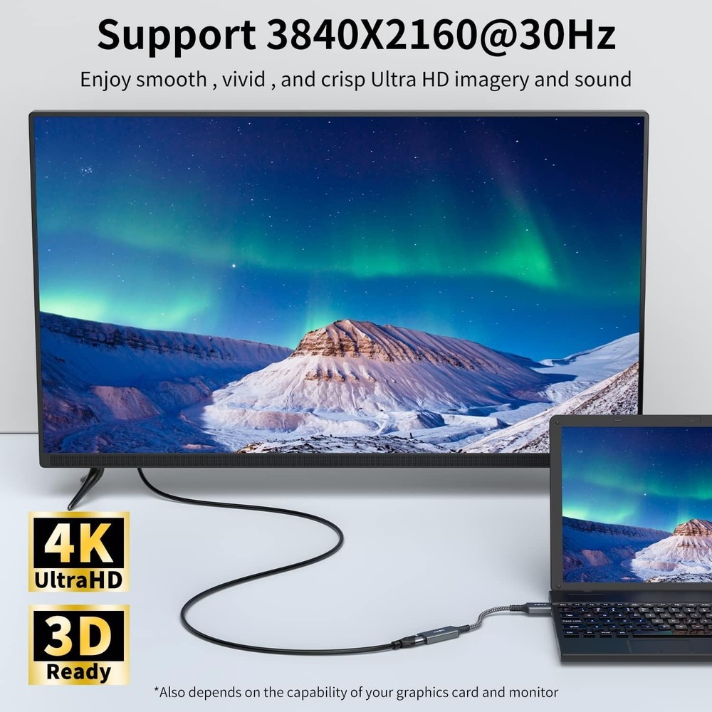 4K DisplayPort to HDMI Adapter Cable, Gold-Plated Uni-Directional Display Port DP to HDMI Screen Converter (Male to Female) Compatible for Lenovo, HP, Dell, GPU, AMD, NVIDIA, More Passive About this item [Convert DisplayPort to HDMI 4K UHD] Going beyond 1440p and 1080p, the IIABC DP male to HDMI female dongle gives you 3840x2160@30Hz vision with incredible detail. From any laptop/desktop with DisplayPort, DP, DP++, or DisplayPort++ to your monitor, projector, HDTV. or VR headset with HDMI, you would enjoy lag-free videos with flawless audio pass-thru. Backward compatible with 1440p@60Hz, 1080p@120Hz. HDCP 2.2 Compliant. [SUPERIOR STABILITY] Built-in advanced IC chip converts DisplayPort signal to HDMI signal; It is NOT a bi-directional converter and cannot transmit signals from HDMI to DisplayPort. [Top-Notch Quality] Thick gold-plated pins, sturdy aluminum case, 28+32AWG stranded copper, and the Nylon braiding. This Display Port to HDMI adapter is corrosion-resistant, interference-free with maximum conductivity, and anti-twisting, -pet-biting. A true value for money gadget should be durable and reliable for constant daily use. [Universal Compatibility] For home office, late-night gaming or movie session, you can trust this IIABC 4K DP to HDMI converter that is compatible with various laptops, desktop tower, GPU and other devices with a DisplayPort. Connect to TV, projector, monitor, VR headset, etc.. Note: It is a PASSIVE uni-directional adapter, only converting FROM DP source TO HDMI display.