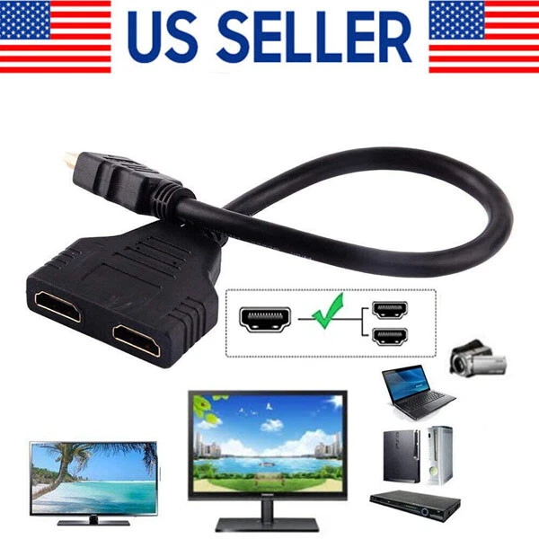 Installation steps: 1. Connect your devices with this splitter cable 2. Turn the signal source on or choose HDMI signal source 3. Turn the first display on first and wait till it works properly 4. Then turn the second display on and enjoy it Specifications: Color: Black Length: 11.8 inch (30 cm) Weight: 52.00g Function:Support Two TVs at The Same Time, Signal One in, Two Out , 24k gold-plated connector. Features: With this HDMI signal splitter,you can connecting one HDMI compatible device (Xbox, Blue ray, DVD players, PS3) to two visual output devises (such as, HDTV, Monitor, etc.). This HDMI Splitter Adapter Cable can transmits the video & audio signal from one HDMI compatible device (such as, a Blu-ray player, etc.) to one of two visual output devices (such as, HDTV, Monitor, etc.) that are plugged into it. If you have two HDTV in two different separate rooms, and you want to let the two different HDTV show the same image. After connected, you just need to turn one TV off and turn the other TV on, this HDMI splitter adapter cable can allow you watch the same image of TV in two rooms. Buyer Note: If you are satisfied with our service, we appreciate you leaving us a positive feedback and 5 star rating review! Your opinion is important to the success of our business. If you are not satisfied with the product or have not received the product for more than 35 days, please contact us to resolve, we will do our best to solve. We are sure to come up with a satisfactory solution. Please contact us first before leaving cold feedback or good feedback of 1-3 stars and opening the case. We'll do our best to solve your problem. Because we believe that everything can be solved through communication. Thank you very much!