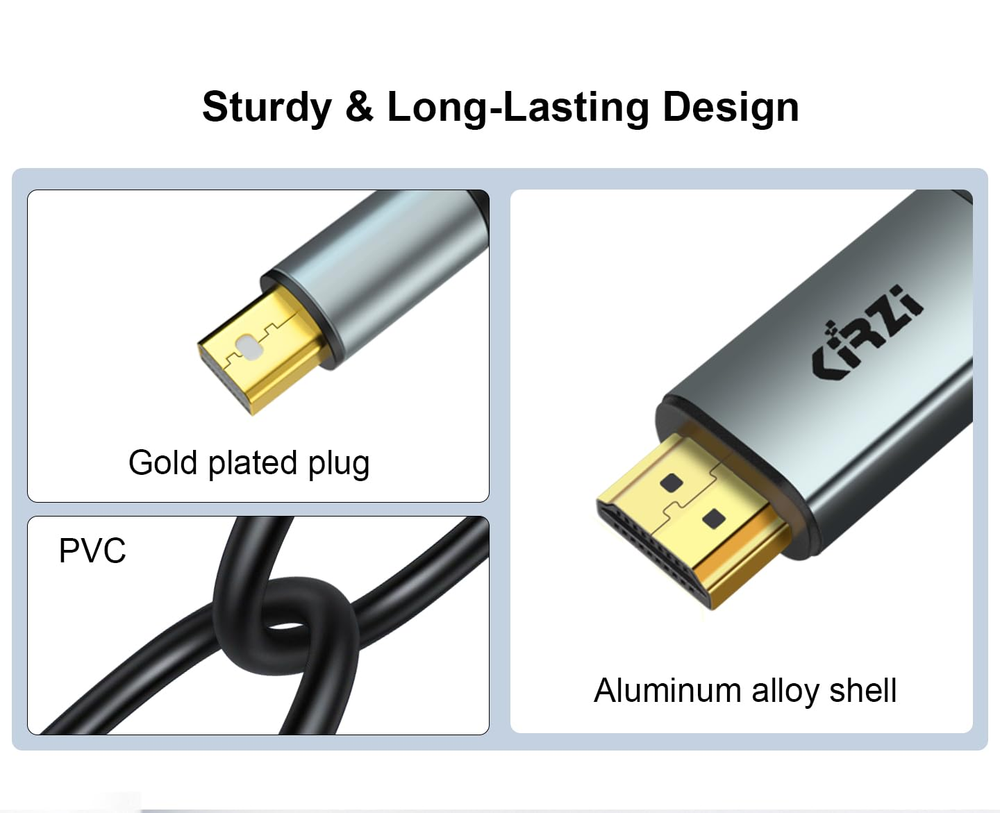 Versatile Connectivity: This A ctive mini DisplayPort to HDMI cable enables seamless connection between devices with Mini DisplayPort output and HDMI input, allowing high-definition video and audio transmission. Premium Construction: Crafted with durable materials and reinforced connectors, this cable ensures reliable performance and longevity. High-Speed Data Transfer: Supports resolutions up to 4K at 60Hz, providing crystal-clear visuals for gaming, movies, and multimedia applications. Compact Design: The sleek and compact form factor allows for easy cable management and portability. Plug and Play: Simply connect the cable between compatible devices for an instant high-quality audio/video experience. Product Description Active mini dp to hdmi cable Active Mini Display Port(Mini DP/MDP) to HDMI Cable is an indispensable companion for your Mac, PC, or tablet equipped with Mini DisplayPort. Connect your laptop or tablet to an HDTV for ultra-high definition video (4K @60Hz) and audio streaming or to a 4K monitor or projector. The low-profile connector with molded strain-relief design increases durability. Compatible with Mini DP & Thunderbolt 2 Apple MacBook 2010, MacBook Air (2009-2017), MacBook Pro (2012-2015), iMac (2011-2015), Mac Mini (2010-2014), Mac Pro (2009-2013) ThinkPad X1 Carbon 2015/2016/2017, X230/X240s, L430/L440/L530/L540, T430/T440/T440s/T440p/T530/540p, W530/W540,Helix XPS 13/14/15/17, Latitude E7240/E7440, Precision M3800; Alienware 14/17/18 Microsoft Surface Pro/Pro 2/Pro 3/Pro 4/Pro 5/Pro 6, Surface 3, Surface Dock, Surface Book, Surface Studio (NOT Surface/Surface 2 for Windows RT) Acer Aspire R7/S7/V5/V7, HP Envy 14/17, Google Chromebook Pixel, Other devices with Mini Displayport (Thunderbolt 2) port Multi function: Support AMD Eyefinity Multi-Display Technology. Support resolution up to 3840x2160 (4K) Ultra-HD @ 60Hz, including 2560×1600, 1920×1080, 1920×1200, 1440×900, 1280×720, ect. HDMI 2.0a data rates to 18Gbps, Mini DisplayPort 1.2 and 1.3 to 5.4Gbps/lane. Support one screen, two screens, three screens, four screens, five screens, six screens. Two Mode available: Mirror Mode, Extended Mode. support 4k@60hz -high-end chip: PS176 -Multi-shielded cable -Self-powered, no external power required -Supports display resolution up to 4096 x 2160 at 60Hz frame rate with 24-bit color -Includes on-chip microprocessor with internal SPI ROM -Supports RGB up to 12 bpc, YCbCr 4:4:4, 4:2:2 and 4:2:0 up to 12 bpc -Supports content protection formats HDCP 1.4 and HDCP 2.2 -HDCP 1.4 and HDCP 2.2 repeater function with on-chip keys -Supports TMDS scrambling for EMI/RFI reduction -Supports SCDC (Status and Control Data Channel) -Audio support up to 8 channels LPCM