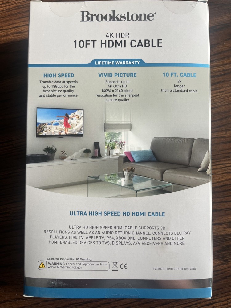 Enhance your viewing experience with this Brookstone 10-foot HDMI cable. Designed to connect any device with an HDMI port, this universal cable is perfect for use with TVs, video game consoles, and other home entertainment systems. With a sleek black color and a durable design, this cable is built to last. Enjoy stunning 4K resolution and ultra-high speeds with this HDMI 2.0 cable. Perfect for use with the latest devices, this cable ensures a seamless connection every time. With a generous 10-foot length, you have plenty of time to set up your equipment without worrying about signal loss. Upgrade your home entertainment system with this high-quality HDMI cable today.
