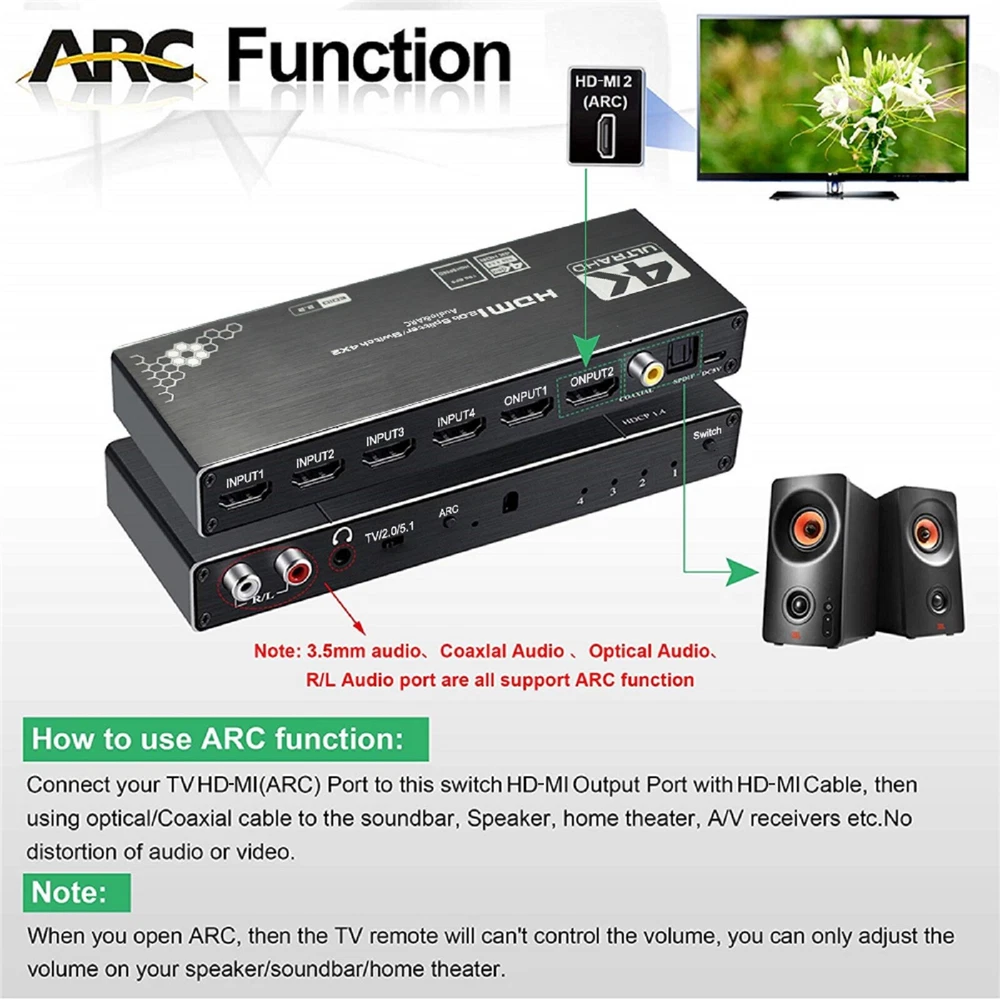 4K@60Hz HDMI Switch with ARC Support for 1080P & 4K Devices