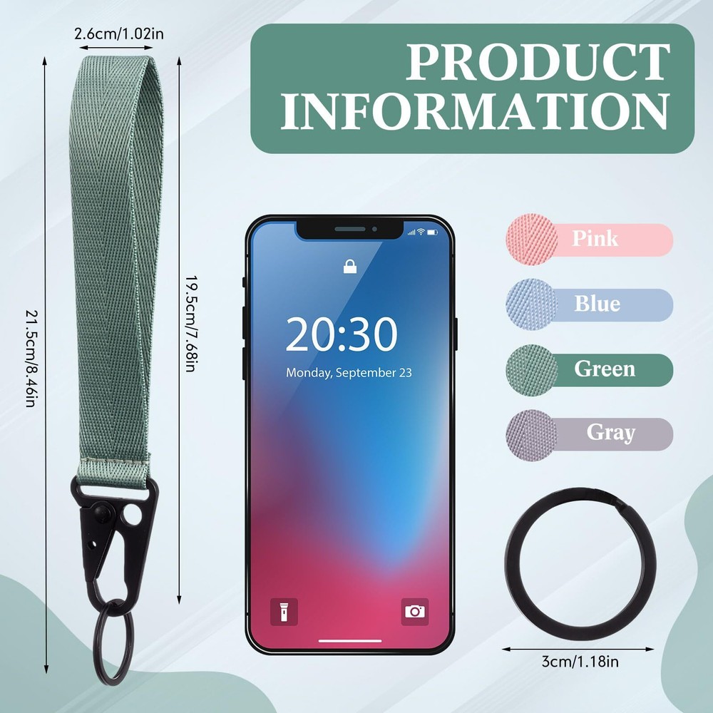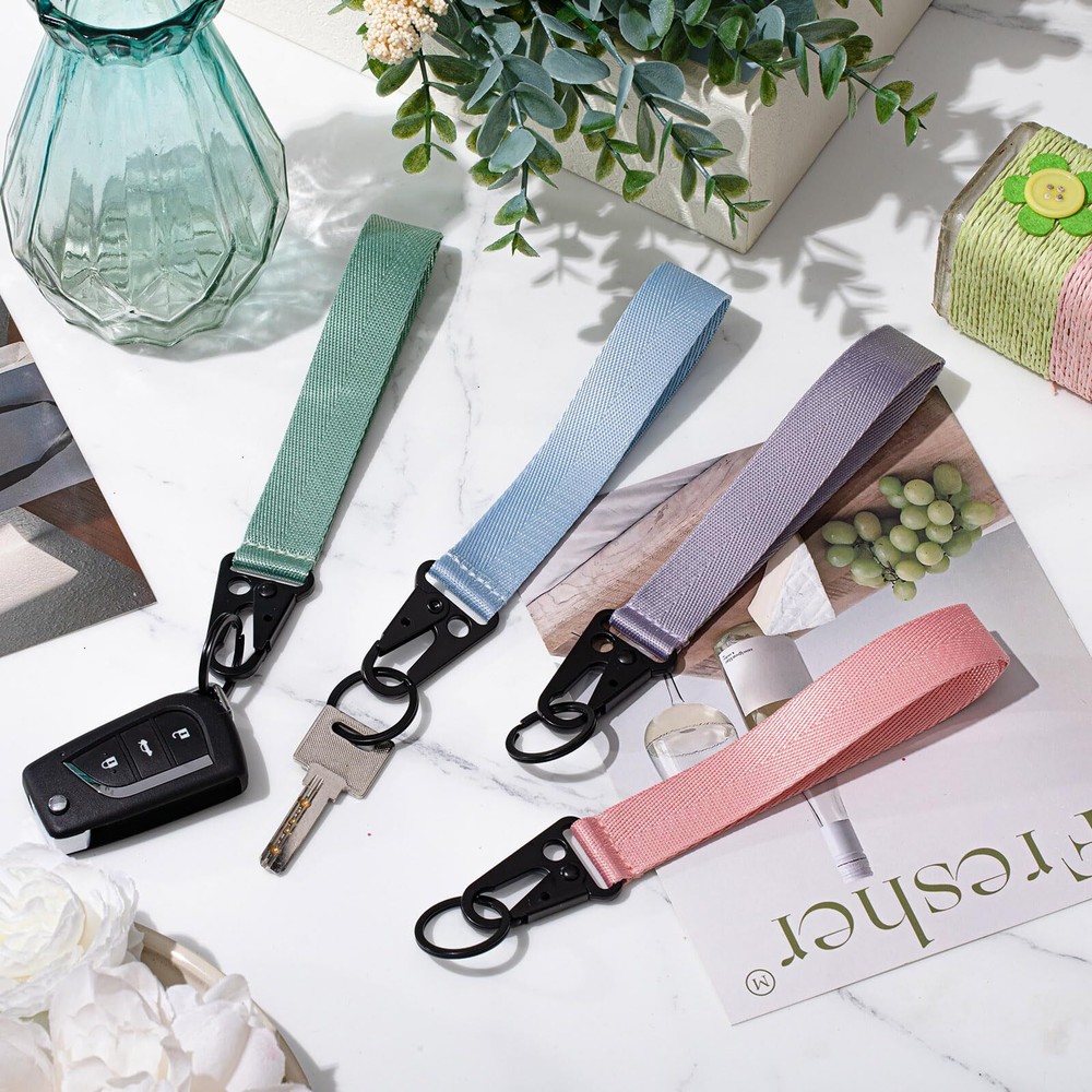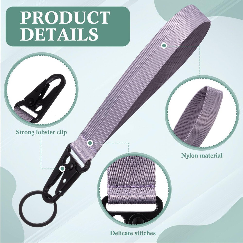 4 Choices of Colors: the package of the wristlet straps have 4 different colors, which are pink, green, light blue and light purple, so you can choose the color you like, and the quantity is enough for you to use for a long time Suitable for Your Wrist: the size of wristlet keychain holder is 19.2 x 3 cm/ 7.56 x 1.18 inch, which is long and wide enough to wear; If you are looking for a keychain holder, this hand wrist lanyard is a good choice Solid and Durable: the wrist lanyard is mainly made of nylon material, solid and durable, not easy to deform or damage; At the same time, it's interface uses zinc alloy, which can firmly fix things; The combination of nylon wrist lanyard and zinc alloy make it have a long service life Comfortable to Use: the wrist key chain lanyard consists of three parts, which are a nylon strap, a lobster clip and a key ring, it can be applied on bare skin, and will not make you feel uncomfortable, bringing you a good experience Portable Key Storage: the wristlet strap key chain holder can commonly applied wallets or car keys together, and if you need to increase it's storage capacity, you can add as many key rings as you want on the lobster clap, which will bring convenience for you