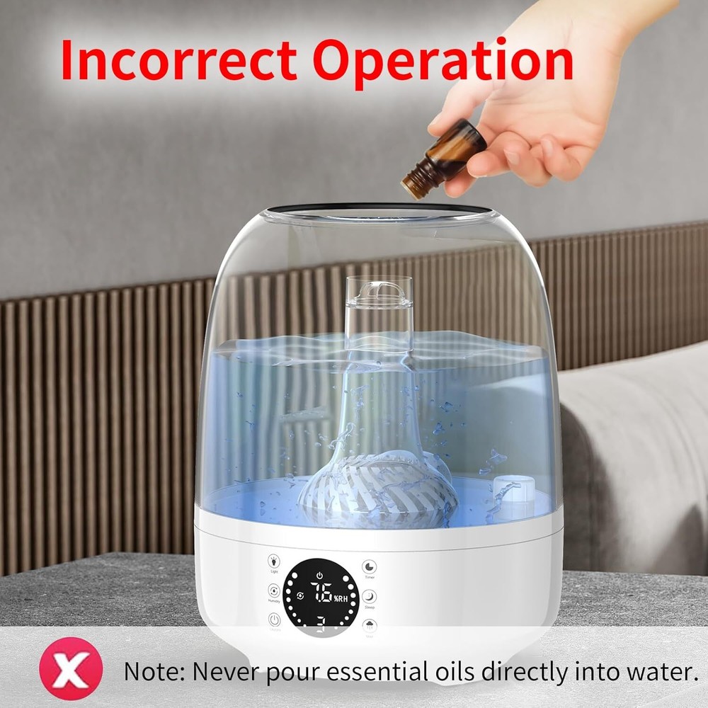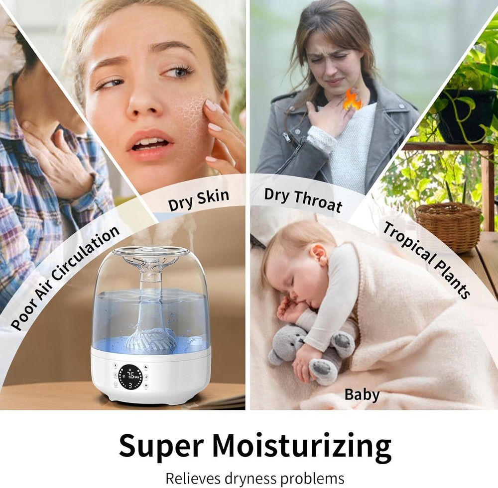 Product Description Humidifier for Bedroom, 4L Top Fill Supersized Cool Mist Humidifier, Quiet Air Humidifier With LCD Display, Lasts Up to 35 Hours, Auto Shut-Off,3 Colors Light, Large Room, Baby Nursery Plants 4L Smart & Large Continuous Comfort: Enjoy quiet sleep without congestion, coughing, or dry mouth, Kazazoo's ultrasonic atomization brings noise down to 28dB, With a spacious 4L/1.32Gallon water tank, you don't need to add water frequently, allowing you to enjoy up to 35 hours humidity in 320 ft² / 30 m² room.3 types of humidity control: auto mode, constant humidity & 3 speed levels (Hi/Med./Low) deliver the desired air quality in your room or office. IMPROVED COMFORT, HEALRHY LIFE: Adopt Ultrasonic humidification technology to quickly increase the humidity and improve indoor environment, keeps skin moisturized, relieves dry cough and other discomfort symptoms, so that you can enjoy a healthy and comfortable life. Top fill & Easy to clean: The top filling design with a wide opening allows you to pour water directly into the water tank without removing it from the device (use distilled water only!). Maintain this desk humidifier fast and easy. To clean the reservoir more carefully, simply lift it up from the base. Its top fill and leakproof construction ensures reliable operation for years Cold & Discomfort relief / timely support: Hydrate your body with the right amount of moisture in the air to have a healthy sleep, relieve itchiness, discomfort and cold symptoms with our air humidifier. In case you have questions about this device, contact our support team for more details. At Kazazoo, you always have our back if any issues occur. Keep optimal humidity in the room and stay sound with the functional humidifier by Kazazoo 【Premium after-sale service Don't fill oils in humidifier 】: This plant humidifier indoor is made of advanced eco-friendly materials. Comes with an AC power adapter, user manual, and 24-hour prompt response. Our customer support team is here to ensure your satisfaction! Feel free to try our humidifiers! Don't fill oils in humidifier About Us We are a reputable seller with many years of experience selling on eBay. Our goal is to provide high-quality products and excellent customer service. Shipping Items will be shipped within 1-3 business days when we received payment. (Orders are not processed on weekends & holidays) Tracking information will be sent once item is shipped. Delivery time depends on destination and other factors Item is shipped to ebay address. Leaving correct address can minimize delay. For international shipping and shipping to Guam, Hawaii and Alaska, Please contact us before placing the order. International buyers please note: Import duties, taxes and charges are not included in the item price or shipping charges. These charges are buyer’s responsibility. We will try our best to reduce the risk of the custom duties. Local pick-up is unavailable at the moment. Contact Us We reply any email messages within 1 business / working days(off-duty at weekend). If you do not get a response from us, then please check your junk or spam mailbox. Our Business hours: Mon-Fri 9:00-18:00, UTC/GMT +8 hours. Please contact us either by clicking "contact seller" in the "purchase history" section or simply click "ask a question" at the bottom of this page. If you are unsatisfied with our item or service, please contact us before leaving any feedback. We are committed to resolve all issues in a friendly and satisfactory manner.