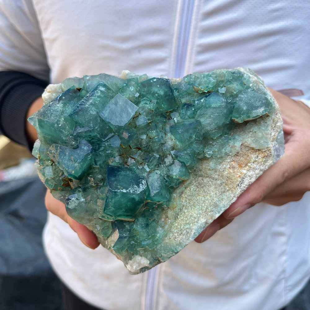 2.9LB Natural Green Fluorite Cube Quartz Crystal Cluster Mineral Specimen