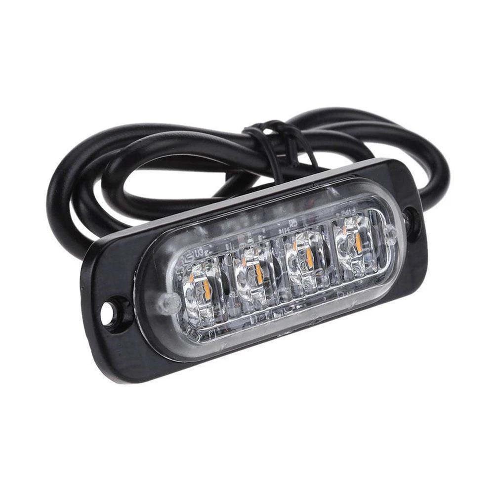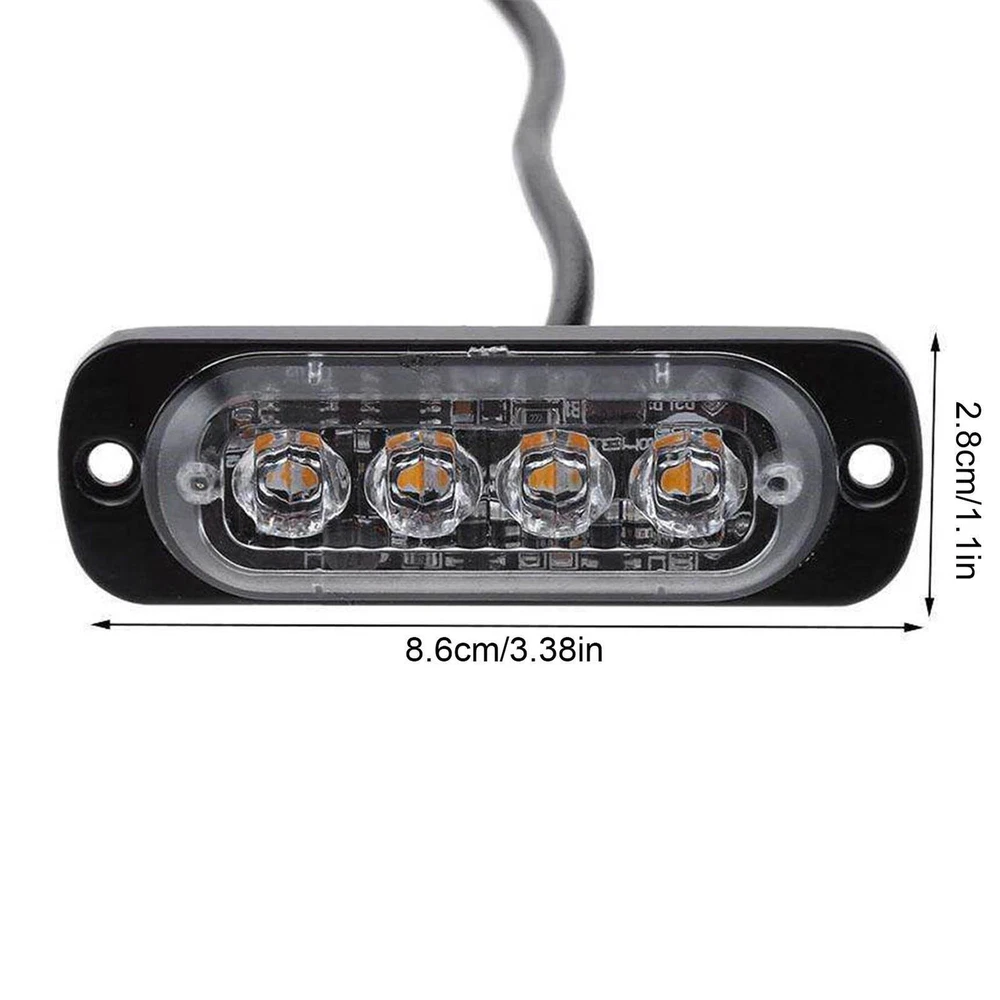 4-LED Amber Strobe Lights 12V-24V Beacon Warning Hazard Flash Strobe Lights Bar
