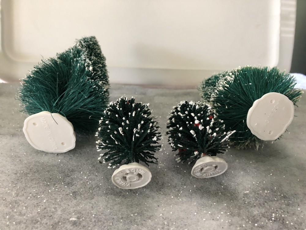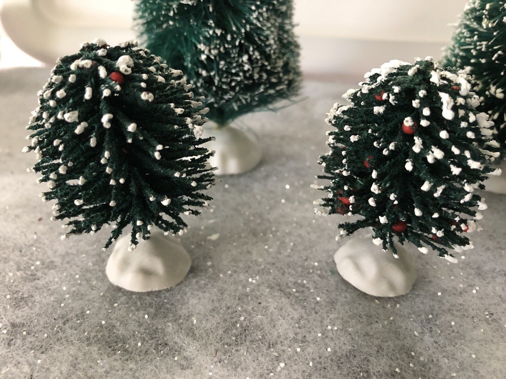 Reducing holiday decorations Lemax Sisal Bottle Brush Christmas Trees Shrubs Flocked Snow Village Excellent Preowned condition- some defects just like real trees in the forest Trees are 6” tall x 2.5” wide at base Shrubs are 2.25” x 1.5” wide Quick shipping Smoke free home