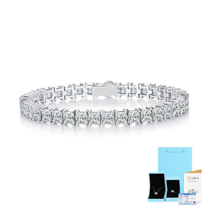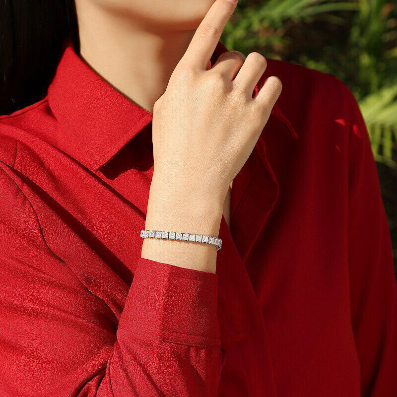 This stunning bracelet is a total showstopper—sparkles like crazy and feels so elegant! The moissanite stones are incredibly clear and fiery, way better than cheap alternatives but still affordable compared to diamonds. The silver is high quality, and the princess cuts give it a luxurious, high-end look. Perfect for dressing up or everyday wear—I get compliments every time I wear it! Definitely worth every penny for such a gorgeous, well-made piece. Love it!