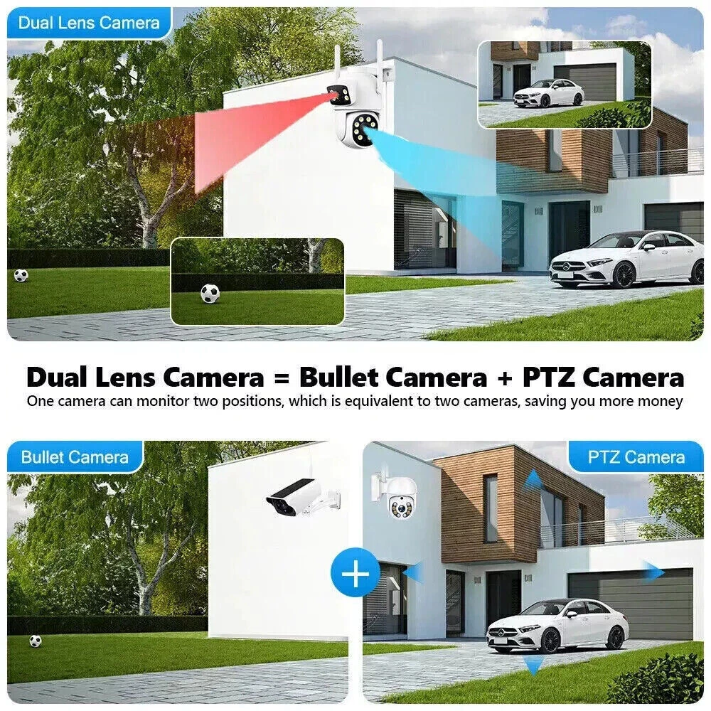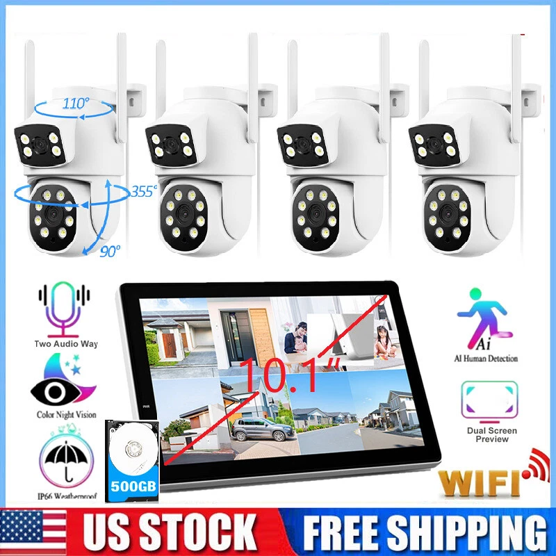 Top Sale Solar Powered Security Camera Outdoor Wireless System 10CH 10" Monitor Home HDD 313.49 USD 329.99 USD Free shipping 5% off TOGUARD 12"LCD 10CH NVR WIFI IP Wireless Security Camera System Outdoor 1TB HD 237.49 USD 249.99 USD Free shipping 5% off 1080P Dual Lens WiFi Light Bulb Security Camera 10X Hybrid Zoom Light Socket Cam 29.99 USD Free shipping 10CH 4MP Wire-Free Battery Powered Wireless Home Security Camera System 500GB 329.99 USD Free shipping 10CH Wireless Security Camera System with 10.1" Monitor, 4pcs Outdoor Wired PTZ Camera Dual Screen Preview,2-Way Audio, Color Night Vision, Auto Tracking,24/7 Recording,2.4G/5G WiFi Pro About this item โ Catch All Angle View : The latest fixed angle & PT lens linkage eradicates any concerns about blind spots when the camera tracks people's movements. It offers the simplest solution for a home safety plan by covering all angles with just one security camera. No need to purchase separate single bullet fixed cameras and dome cameras. One camera is all you require, making it a cost-effective choice for surveillance. ๐ก๐ฒ๐ฒ๐ฑ ๐ฝ๐น๐๐ด๐ด๐ฒ๐ฑ ๐ถ๐ป ๐ฎ๐น๐น ๐๐ต๐ฒ ๐๐ถ๐บ๐ฒ! โ All in one 10.1" LCD Monitor Display : Wireless PTZ security camera system comes with 10 channel 10.1" LCD screen monitor (Not Touch Screen) which is all-in-one video recording,very easy to setup and no need extra monitor or TV screen. The cameras and NVR monitor are auto-paired during the factory setting. Just need to connect the wireless cameras and NVR with power supply provided for 24/ 7 surveillance purposes. โ In time Notification & Human Tracking : The dual lens wireless outdoor camera is equipped with a built-in motion sensor that is highly sensitive to capture motion accurately, delivering superior performance and reducing false alarms on the app. Camera and recorder to enjoy 24/7 non-stonpped guardian .Once it detects approaching people, you will receive a notification on your phone via CloudEye 365 APP or Eseecloud APP. The PTZ camera will automatically track and follow that individual, while the top fixed camera remains stationary. โ Dual Lens & Dual Screen 360ยฐ PTZ Pranoramic Camera : The ptz security cameras wireless outdoor has two lenses: One 110ยฐ wireless outdoor bullet camera (adjust the angle by hand) to monitor the key area, the other Pan 355ยฐ & Tilt 90ยฐ surveillance dome camera (rotate on your phone) covers all-round without blind spots. โ 2.4G/5G Dual Wi-Fi & Indoor/Outdoor Use : Unleash your control with wireless pro dual Wi-Fi connectivity, the home security camera system providing seamless and extensive installation options. Our Wi-Fi cameras effortlessly connect to NVRs and TV screens using the built-in Wi-Fi (over 100 feet) and HDMI cable (included), no external network required, giving you the freedom to place them anywhere in your home. If for remote viewing on smart mobile phone or PC, need simply connect to your 2.4G/5G home Wi-Fi โ Dual-Lens with Dual Screen Auto Tracking PTZ WIFI Camera D ual lens, Dual screen, Notifications alarm, humanoid tracking, two way voice intercom 360 monitoring, full color night vision, IP66 waterproof, mobile phone remote monitoring๏ผShare video, hdd storage, 24 hours video recording. โ Easy Setup , Over 100ft Range With wireless wifi pro, more than 100ft range, the wireless security camera system recorder equipped with 10'1 inch screen monitor(Not Touch Screen) with built in NVR, full HD dispplay clear image which view angle will be more widely. The cameras and NVR monitor are auto-paired during the factory setting. Just need to connect the wireless wifi cameras and NVR with power supply provided for 24/ 7 surveillance purposes, plug&play. โ Expandable NVR Kits, Always Ready for Upgrade Wireless system uses the latest wireless cascading technology. When the camera is far away from the NVR, wireless cascade technology allows the camera to transmit the signal to another camera closest to it. The wireless cascade technology greatly improves the transmission distance and stability. โ Motion Detection & Humanoid Detection & Won't miss Events If the camera detects humanoid movements, the system will send out an alarm (Show message to APP, Send email, system buzzer). You can know that someone is approaching your home anytime, anywhere. โ 24/7 Loop Recording, Won't Miss any Moment The ptz security camera system 500G HDD is pre-installed for around 45 days of 4 cameras 24/7 continuousrecording. HDD will overwrite automatically when it's full. โ Support with Big Monitor (TVใPC)๏ผHDMI Output Display NOTE: When plugged with a larger monitor screen via the HDMI port, the 10.1" NVR screen still works well but in black screen. This is normal.