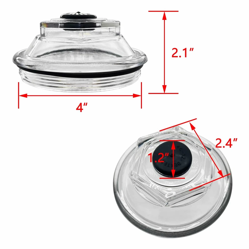 21-36 Oil Cap Kit Replacement For Dexter 9K (AFTER 10-1-89) & 10K & 12K & 15K Axles, K71-148-00 Oil Bath Dust Caps 4.0" Thread Trailer Axle Plastic Cap (4Pcs) Product Description Replacement Part Number: K71-148-00. Each part: Oil Caps - 021-036-00; O-Rings - 010-050-00; Plugs - 046-032-00. Well-Made: Made of high-quality materials, it is lightweight, corrosion-resistant, oxidation-resistant, and durable. Package Includes: 4 * 21-36 Oil Caps; 4 * O-rings; 4 * Rubber plugs. Compatible with For Dexter 9K (AFTER 10-1-1989), 10K, 12K, and 15K Axles. Note: This does not fit for the 10K 2009 and newer "10,000# general duty axles from Dexter #21-88". Specification: Outside Diameter: 4"; Thread: 4"-12; Depth 1-1/2". Replacement Part Number 2136, 21-36, K7114800, K71-148-00 Each part Oil Caps - 021-036-00; O-Rings - 010-050-00; P-Plugs - 046-032-00.