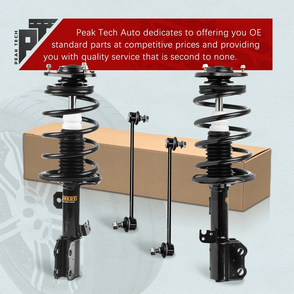 Store Home New Arrival View Feedback Contact us Add to Favourites 4PC Front Struts & Sway Bar Links Kit for Toyota Matrix Pontiac Vibe 2003 - 2008 Assembly Items Description Package Includes: 1x Front Driver Side Complete Strut + 1x Front Passenger Side Complete Strut 2x Front Sway Bar Links Compatibility: For 2003 - 2008 Toyota Matrix For 2003 - 2008 Pontiac Vibe Shipping Payment Return Warranty About us Shipping All orders in the continental 48 States will be shipped free of charge. Orders placed before 12pm (Eastern Standard) will be shipped the same business day of purchase. We only ship to the address provided to us at the time of checkout. Please verify the shipping address before making any payment. We do not ship to Hawaii, Alaska, Puerto Rico, APO/FPO/PO Boxes. Payment Paypal, Visa, and MasterCard are accepted forms of payment. Please use eBay checkout system when place your order. Immediate payment is required for all orders. Return Buyer has 30 days to return the items after receiving packages. Please note we only accept return for brand new products. When the return mistake is made on seller, we will provide a free return. Or, customer will be charged for return shipping fee. We will issue a refund to buyer after receiving and checking return packages. Warranty Peak Tech provides a Lifetime Warranty for original purchasers. If an auto part is defective, Peak Tech will provide ONE-Time replacement. Buyer needs to pay for the shipping cost of replacements occurred in warranty process. Buyer needs to provide Pictures or Video of damaged goods. About us Peak Tech focuses on auto parts and provides struts and shock absorbers suitable for a wide range of applications. Peak Tech products deliver the look, feel, fit and performance of OE. We provide buyers with professional customer service, and hope to offer buyers a better shopping experience. You May Also Like for Honda Accord 2008 - 2012 2.4L 2x Struts + 2x Sway Bars Front Right Left Side for Honda CR-V 2002 2003 2004 2005 2006 2PCs Struts Coil Spring Front Right Left for Honda CR-V CRV 2007 2008 2009- 2014 2PCs Struts Coil Spring Front Right Left for Honda Accord 2008 - 2012 2.4L 2PCs Struts Coil Spring Front Right Left Side for 2006 - 2011 Honda Civic 1.8L Sedan & Acura CSX 2PCs Struts Front Right Left Copyright © 2024, peak-tech-autoparts All Rights Reserved