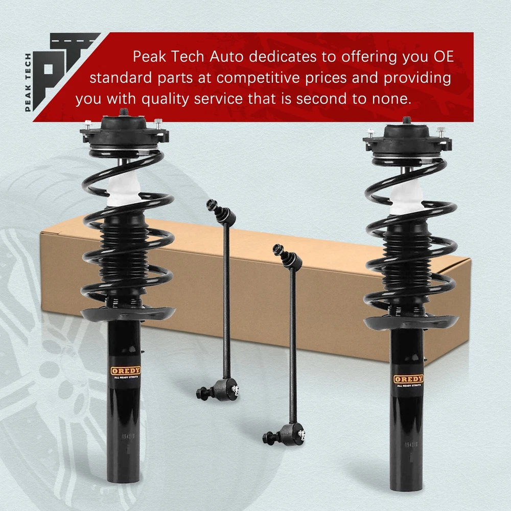 Manufacturer Warranty: Lifetime Universal Fitment: No Shock Absorber Type: Gas Brand: OREDY Interchange Part Number: strut & coil spring assembly, loaded strut, strut shocks absorber assembly, replacement strut, suspension strut, complete strut, high quality quick install set, gas shock strut, amortiguadores delanteros, stabilizer sway bar end link OE/OEM Part Number: 172311 K80478 Shock Absorber System: Double Pipe Type: Strut & Spring Assembly Placement on Vehicle: Front, Left, Right Number in Pack: 4 Manufacturer Part Number: PT00929 Features: Easy to Replace, Gas Charged Shock Items Included: Coil Spring, Strut, Sway Bar