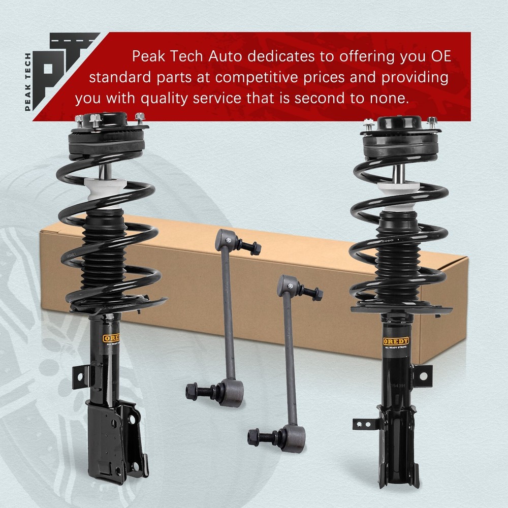 Please kindly know that Peak Tech is a certified distributor of Oredy products. Item in this listing is from brand Oredy. Store Home New Arrival View Feedback Contact us Add to Favourites 4PC Front Struts & Sway Bar Links for Dodge Journey V6 2009 - 2019 Assembly Items Description Package Includes: 1x Front Driver Side Complete Strut + 1x Front Passenger Side Complete Strut 2x Front Sway Bar Links Compatibility: For 2009 - 2019 Dodge Journey (V6 3.5L/3.6L) Shipping Payment Return Warranty About us Shipping All orders in the continental 48 States will be shipped free of charge. Orders placed before 12pm (Eastern Standard) will be shipped the same business day of purchase. We only ship to the address provided to us at the time of checkout. Please verify the shipping address before making any payment. We do not ship to Hawaii, Alaska, Puerto Rico, APO/FPO/PO Boxes. Payment Paypal, Visa, and MasterCard are accepted forms of payment. Please use eBay checkout system when place your order. Immediate payment is required for all orders. Return Buyer has 30 days to return the items after receiving packages. Please note we only accept return for brand new products. When the return mistake is made on seller, we will provide a free return. Or, customer will be charged for return shipping fee. We will issue a refund to buyer after receiving and checking return packages. Warranty Peak Tech provides a Lifetime Warranty for original purchasers. If an auto part is defective, Peak Tech will provide ONE-Time replacement. Buyer needs to pay for the shipping cost of replacements occurred in warranty process. Buyer needs to provide Pictures or Video of damaged goods. About us Peak Tech focuses on auto parts and provides struts and shock absorbers suitable for a wide range of applications. Peak Tech products deliver the look, feel, fit and performance of OE. We provide buyers with professional customer service, and hope to offer buyers a better shopping experience. You May Also Like for Honda Accord 2008 - 2012 2.4L 2x Struts + 2x Sway Bars Front Right Left Side for Honda CR-V 2002 2003 2004 2005 2006 2PCs Struts Coil Spring Front Right Left for Honda CR-V CRV 2007 2008 2009- 2014 2PCs Struts Coil Spring Front Right Left for Honda Accord 2008 - 2012 2.4L 2PCs Struts Coil Spring Front Right Left Side for 2006 - 2011 Honda Civic 1.8L Sedan & Acura CSX 2PCs Struts Front Right Left Copyright © 2024, peak-tech-autoparts All Rights Reserved