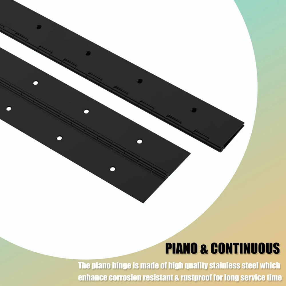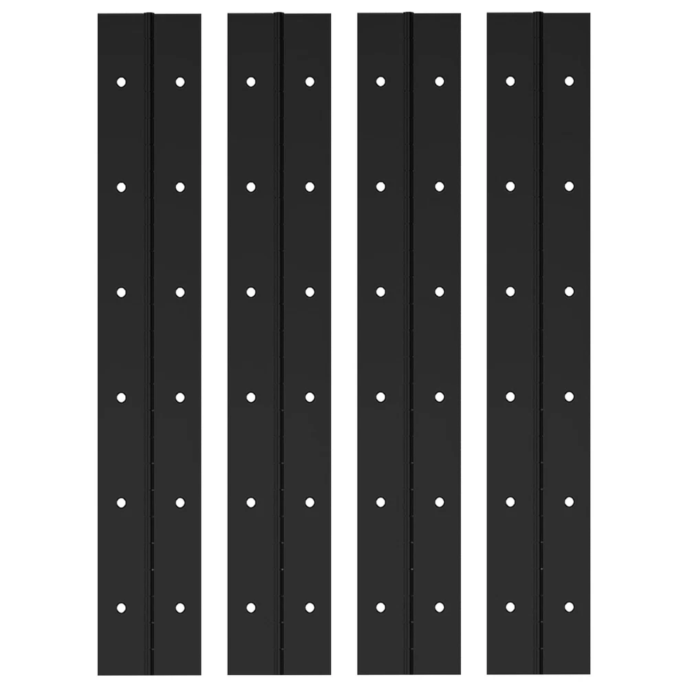 EPHECH 4PCS 12Inch Black Continuous Piano Hinge Constructed with 304 Stainless Steel, Matt Black Coated Surface Enhance Corrosion Resistant and Rustproof for Long Time Use WHY CHOOSE OUR PIANO HINGE RELIABLE MATERIAL Made from 1mm thickness 304 stainless steel ensure quality than other products on marketplace SMOOTH & QUIET Nice welded and extremely silent design ensuring that hinges open smoothly and quietly SURFACE TREATMENT Matt black electronic coated surface enhance rust resistant and corrosion resistant performance, provides good working experience for your daily use SPECIFICATION OF PIANO HINGE Material: 304 stainless steel Color: Black Surface Treatment: Matt black electronic coated Size: 12 x 1.2inch/300 x 30mm (L x W) Thickness: 0.04inch/1mm Two screw holes distance in length: 2.0inch/50mm Two screw holes distance in width: 0.8inch/20mm PACKAGE INCLUDED 4 x Black Continuous Hinges HEAVY DUTY CONTINUOUS HINGE - These premium piano hinges are made of high quality 304 stainless steel with matt black coated surface enhance corrosion resistant and rustproof for long time service. 12INCH PIANO HINGES - Cabinet door hinge size: 12 x 1.2inch/300 x 30mm, Thickness: 0.04inch/1mm; Two screw holes distance in length is 2.0inch/50mm; Two screw holes distance in width is 0.8inch/20mm. PACKAGE NOT INCLUDED SCREW! EASY OPERATE FOR DOOR HINGE - All holes are countersunk design for convenient operate and easy to fix the screw firmly; Nice welded and extremely silent ensuring that hinges opens smoothly and quietly. WIDE APPLICATION - The furniture hardware door butt hinges are suitable for furniture lids, cabinet doors, wardrobe doors, tool boxes, jewelry storage boxes and more, practical and useful accessory for your daily use. SATISFY SERVICE - Every product comes with a 100% satisfaction guarantee. If for any reason you are not completely satisfied with your purchase, you may return for a refund or exchange.