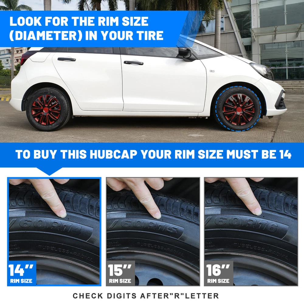 Head Lights Tail Lights Fog Lights Turn Signal Bumper Fender Flare Inner Fender Hubcaps Refrigerator Other Items for sale Head Lights Tail Lights Fog Lights Turn Signal Bumper Fender Flare Inner Fender Liners Portable Refrigerator Features: Universal Fit - Design for 14" wheel hubs. Please know that and check your wheel before purchase to ensure fitment. Protect Your Wheels - Keep your vehicle looking sleek and new with these universal-fit hubcaps that offer reliable protection against scratches, dings, and other types of damage. Durable - Made from high-quality ABS materials, these hubcaps are built to withstand the rigors of daily use, keep your vehicle looking great for years. Stylish - Upgrade the look of your car or truck with these sleek hubcaps to enhance the appearance of your vehicle. Easy to Install - Designed to fit most standard wheel size, these hubcaps can be quickly and easily snap on your wheels without the need for special tools, making them a great choice for busy vehicle owners. Specification: Type: Wheel Hub Caps Color: Black & Red Lacquer Compatible Wheel Diameter: 14 inch / R14 Features:Car Wash Safe, Easy to Install, No Tools Required Material: ABS Number in Pack: 4 Wheel Type: Steel Placement on Vehicle: Front, Left, Rear, Right Package Includes: 4* Wheel Cover Hubcaps